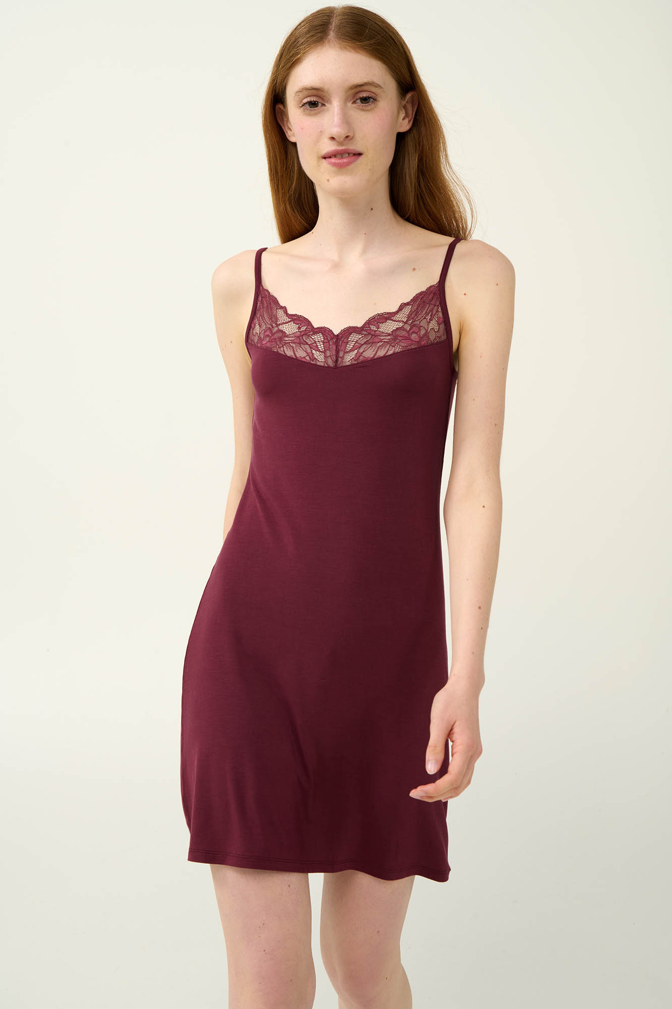 Προσθέστε στη συλλογή σας ένα ελαφρύ νυχτικό που συνδυάζει κομψότητα και άνεση. Είναι κατασκευασμένο από LENZING Tencel Modal Micro, ένα ύφασμα που αγκαλιάζει ευχάριστα το σώμα και προσφέρει απαλή υφή. Είναι σχεδιασμένο με λεπτές, ρυθμιζόμενες τιράντες και δαντέλα στο στήθος που αναδεικνύει το θηλυκό του χαρακτήρα. Ιδανικό για τις στιγμές χαλάρωσης σας στο σπίτι ή τον ύπνο.