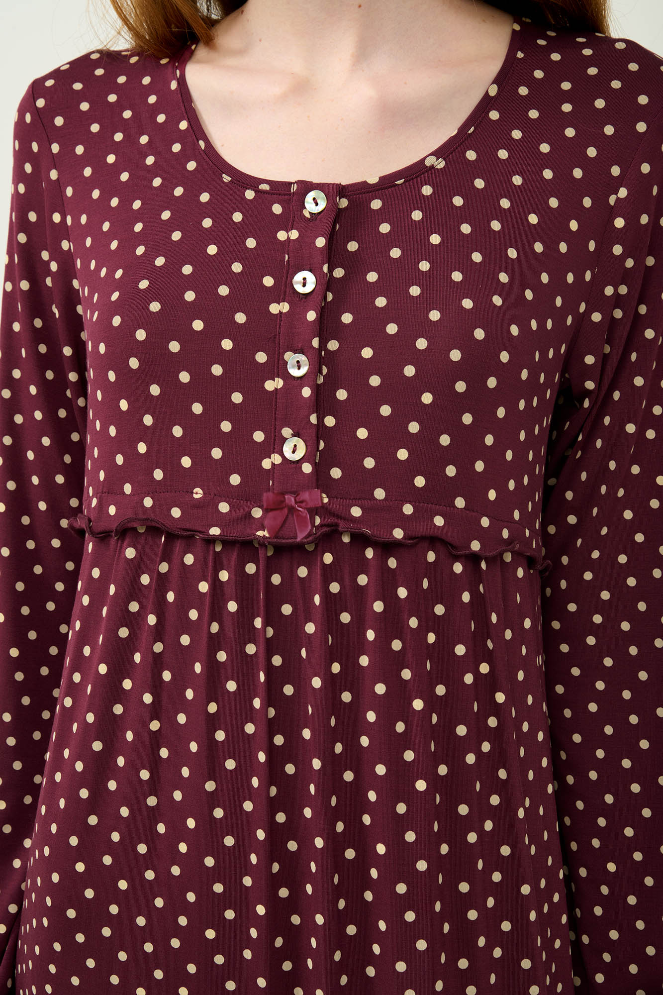 Ανακαλύψτε την τρυφερότητα και τη φροντίδα που σας αξίζει με αυτό το χειμερινό νυχτικό εγκυμοσύνης και θηλασμού. Κατασκευασμένο από εξαιρετικά απαλό LENZING Tencel Modal Micro, αγκαλιάζει απαλά το σώμα, προσφέροντας απόλυτη άνεση και ευχάριστη αίσθηση στο δέρμα. Η διακριτική πατιλέτα διευκολύνει τον θηλασμό, ενώ οι σούρες στην περιοχή της κοιλιάς προσφέρουν ελευθερία κινήσεων και προσαρμογή στο σώμα που αλλάζει. Το μπεζ πουά μοτίβο σε μοβ φόντο προσθέτει μια ρομαντική, θηλυκή νότα. Μια ιδανική επιλογή που συνδυάζει κομψότητα, πρακτικότητα και καθημερινή άνεση που έχετε ανάγκη.