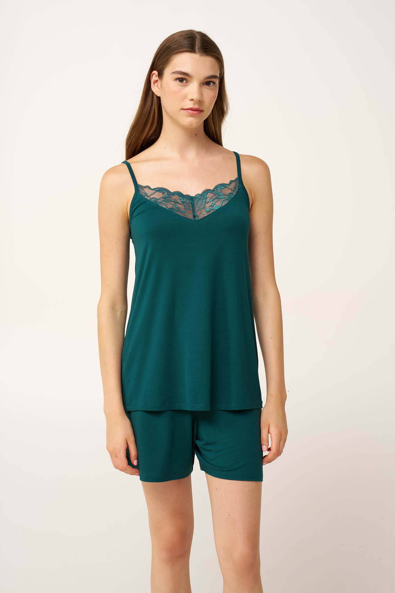 Ανεπιτήδευτα κομψό και ιδανικό για ζεστές καλοκαιρινές νύχτες, αυτό το babydoll είναι κατασκευασμένο από LENZING Tencel Modal Micro, προσφέροντας απαλή, ανάλαφρη και διαπνέουσα αίσθηση στο σώμα. Σχεδιασμένο με λεπτές τιράντες και V λαιμόκοψη με διακριτική δαντέλα, που χαρίζει θηλυκότητα και ρομαντισμό. Μονόχρωμο και διαχρονικό είναι μια εύκολη επιλογή για χαλαρές στιγμές ή ξεκούραστο ύπνο.