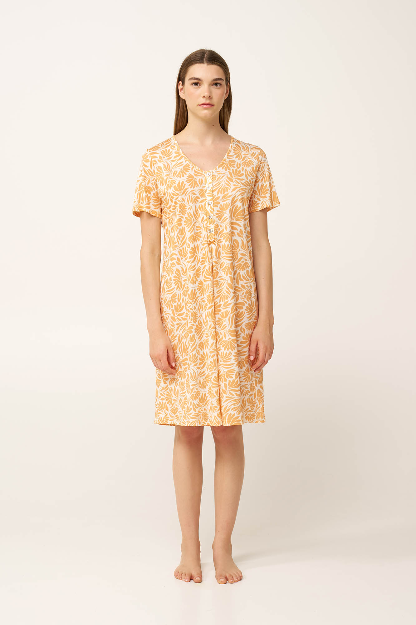 Σχεδιασμένο για ζεστές νύχτες και ήρεμες στιγμές, αυτό το καλοκαιρινό νυχτικό είναι κατασκευασμένο από απαλό και διαπνέον μείγμα βαμβακιού και modal, που χαρίζει ανάλαφρη αίσθηση στο δέρμα. Τα κοντά μανίκια και η κλασική πατιλέτα προσφέρουν καθημερινή άνεση και ευκολία στον θηλασμό, ενώ η διακριτική πιέτα κάτω προσφέρει χαλαρή εφαρμογή στη περιοχή της κοιλιάς. Γοητευτικό και θηλυκό, αποτελεί μια όμορφη και πρακτική επιλογή για βραδιές χαλάρωσης ή στιγμές φροντίδας.