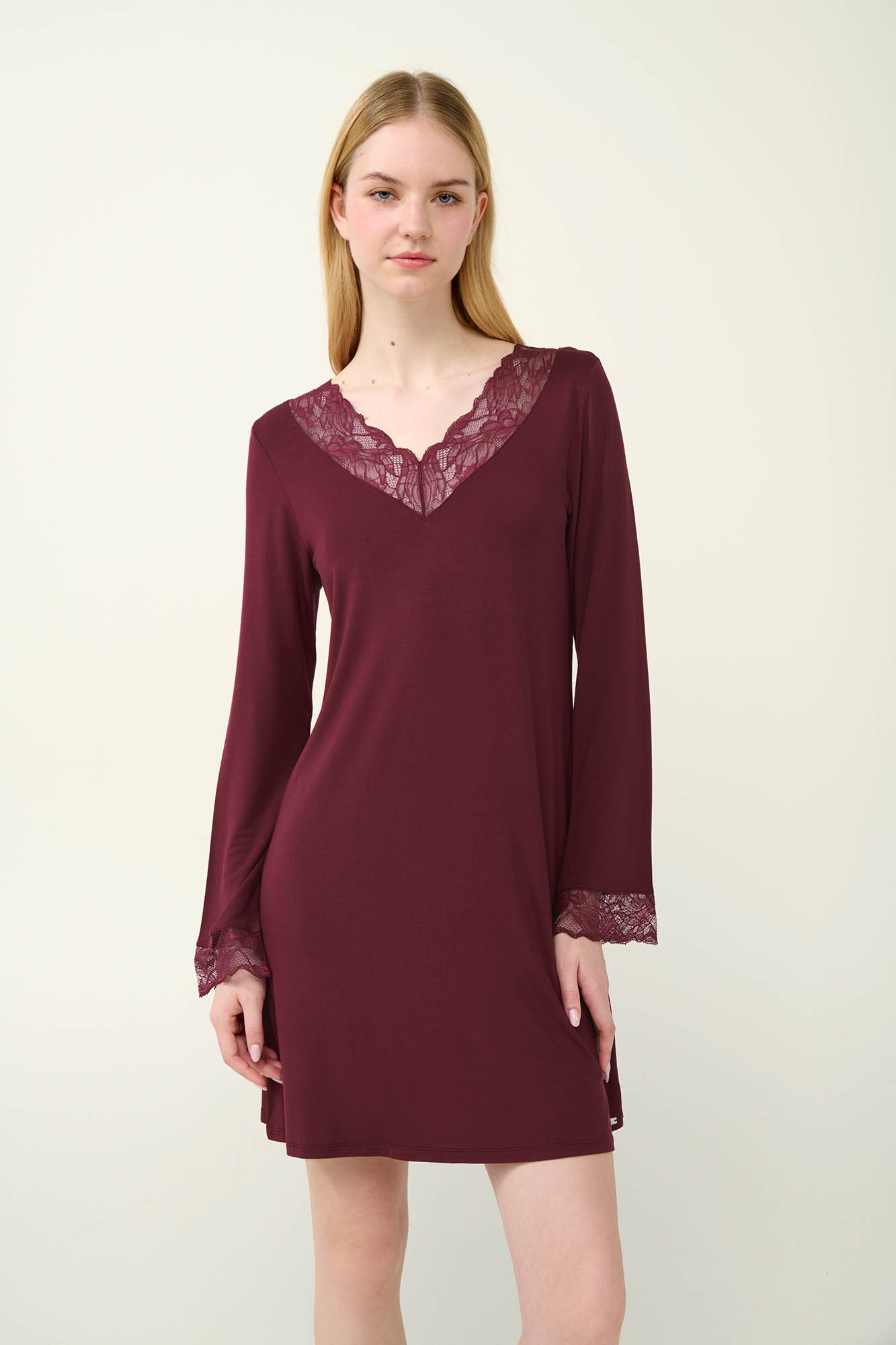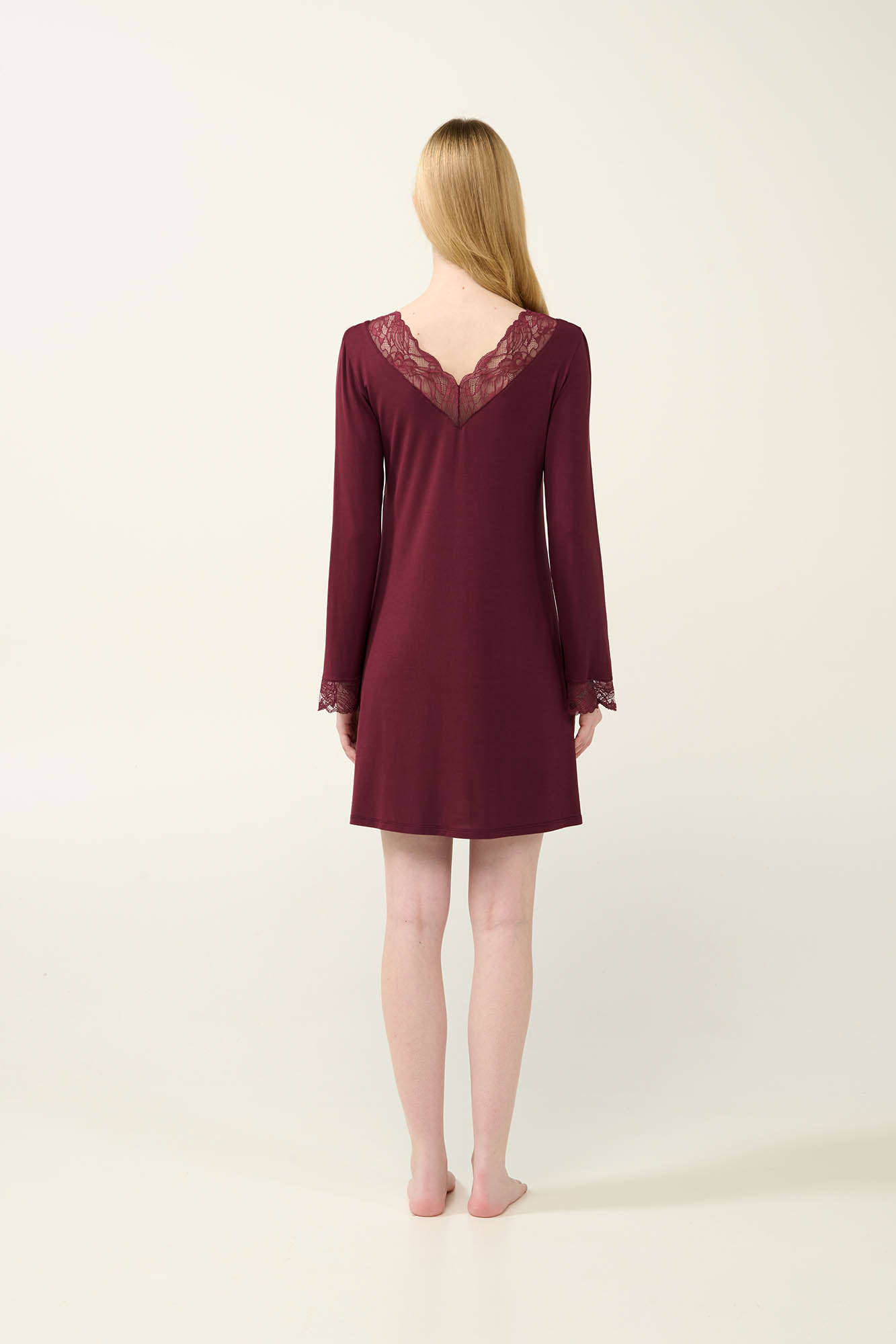 Ανακαλύψτε τη διακριτική κομψότητα που χαρίζει αυτό το μονόχρωμο νυχτικό, φτιαγμένο από LENZING Tencel Modal Micro που προσφέρει μοναδική απαλότητα και άνεση. Διακοσμημένο με δαντέλα στα μανίκια και στη λαιμόκοψη που σχηματίζει V στο στήθος και στην πλάτη, που προσθέτει μια ρομαντική και θηλυκή νότα. Ένα νυχτικό που συνδυάζει απλότητα και φινέτσα, ιδανικό για χαλαρές στιγμές στο σπίτι.