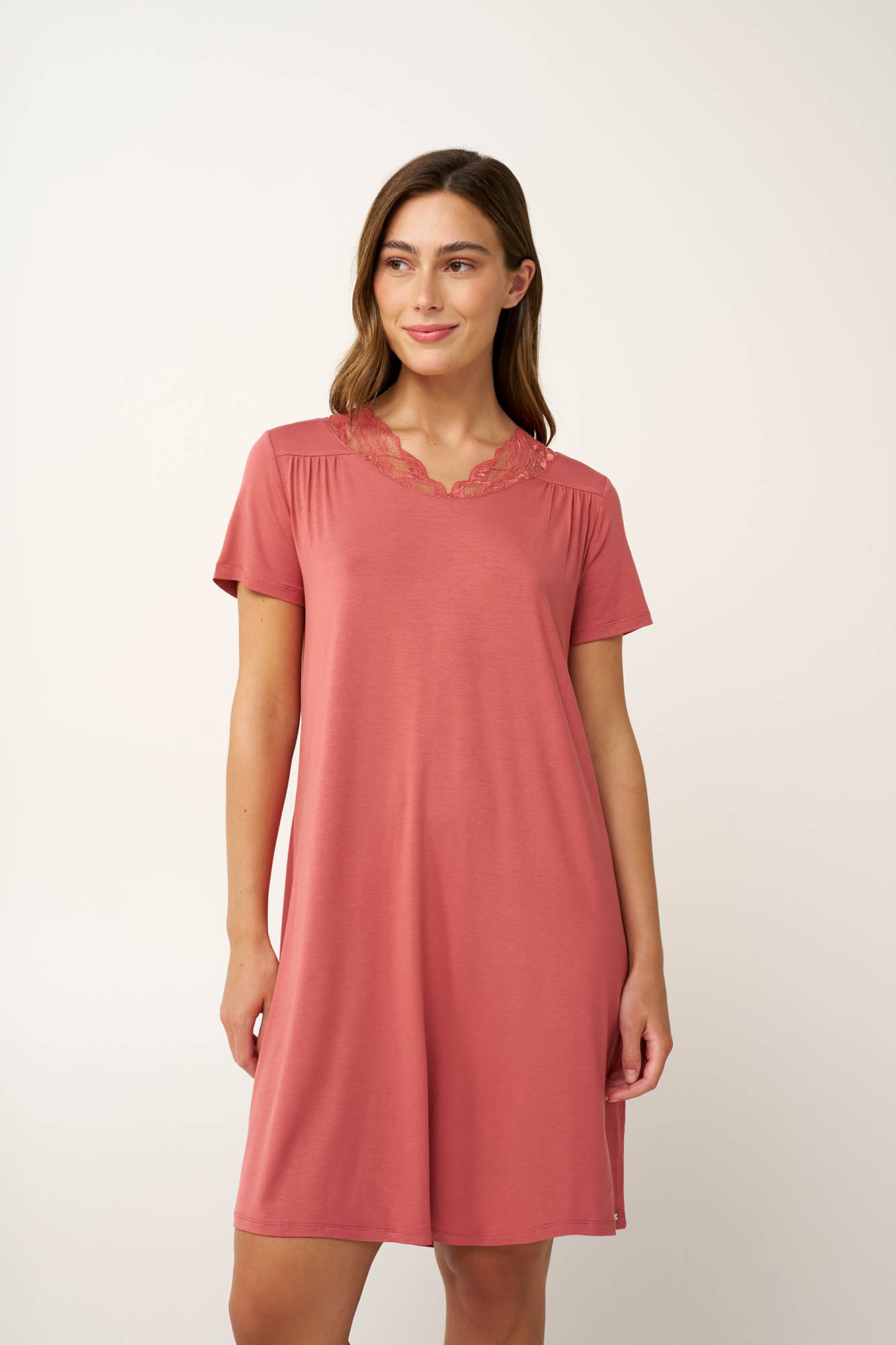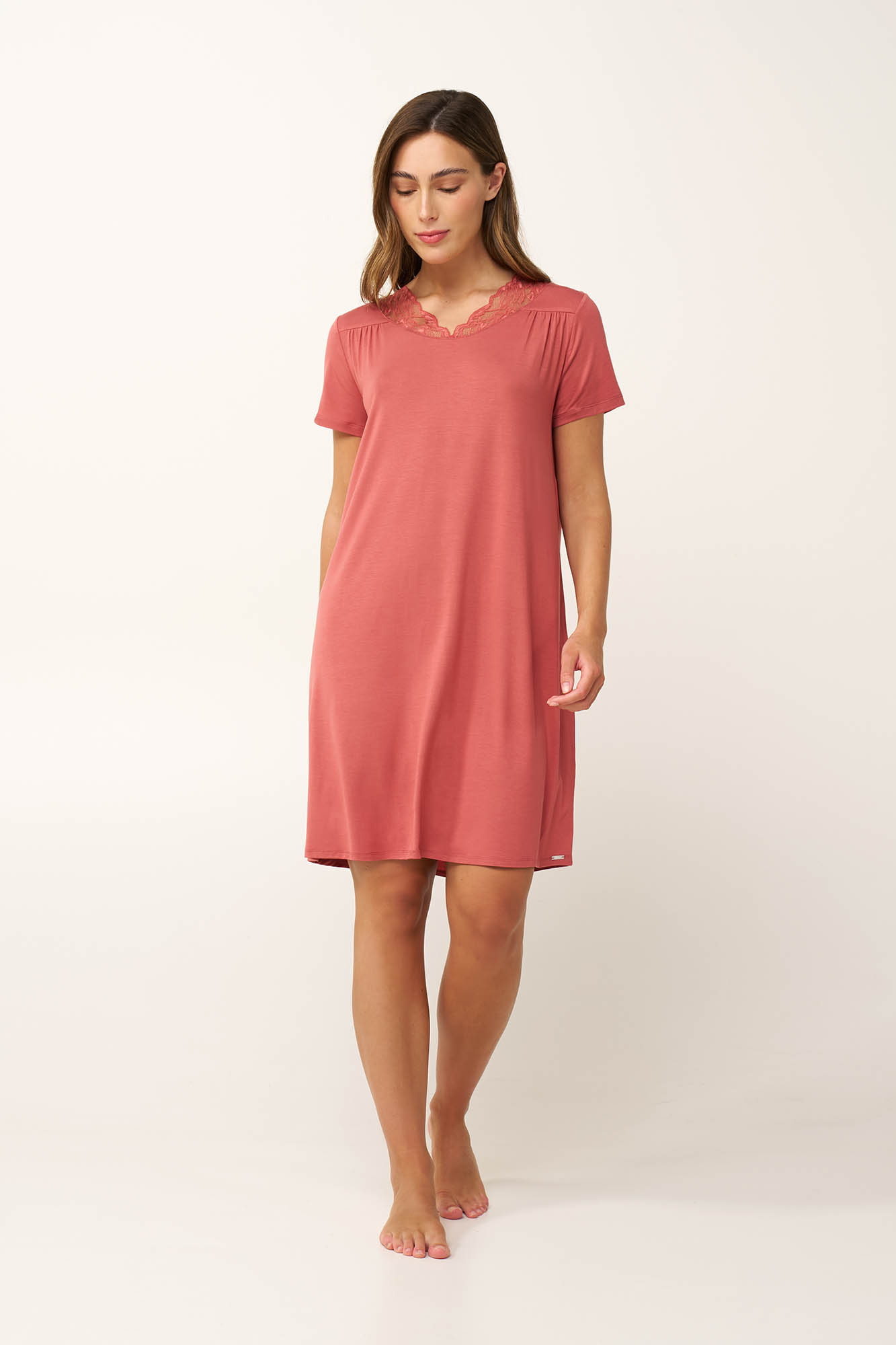 Χαλαρώστε και ανανεωθείτε με αυτό το απαλό και διαπνέον καλοκαιρινό νυχτικό, κατασκευασμένο από LENZING Tencel Modal Micro με elastane για άνετη εφαρμογή. Σχεδιασμένο για ζεστές καλοκαιρινές νύχτες, διαθέτει κοντά μανίκια και ανάλαφρη αίσθηση που ακολουθεί φυσικά την κίνηση του σώματος. Η λεπτή δαντέλα στη λαιμόκοψη προσθέτει μια ρομαντική πινελιά, ενώ τοι διακριτικές σούρες ενισχύουν την άνεση και τη ελευθερία κινήσεων. Κομψό αλλά και θηλυκό, αποτυπώνει τη γοητεία του σύγχρονου ρομαντισμού.