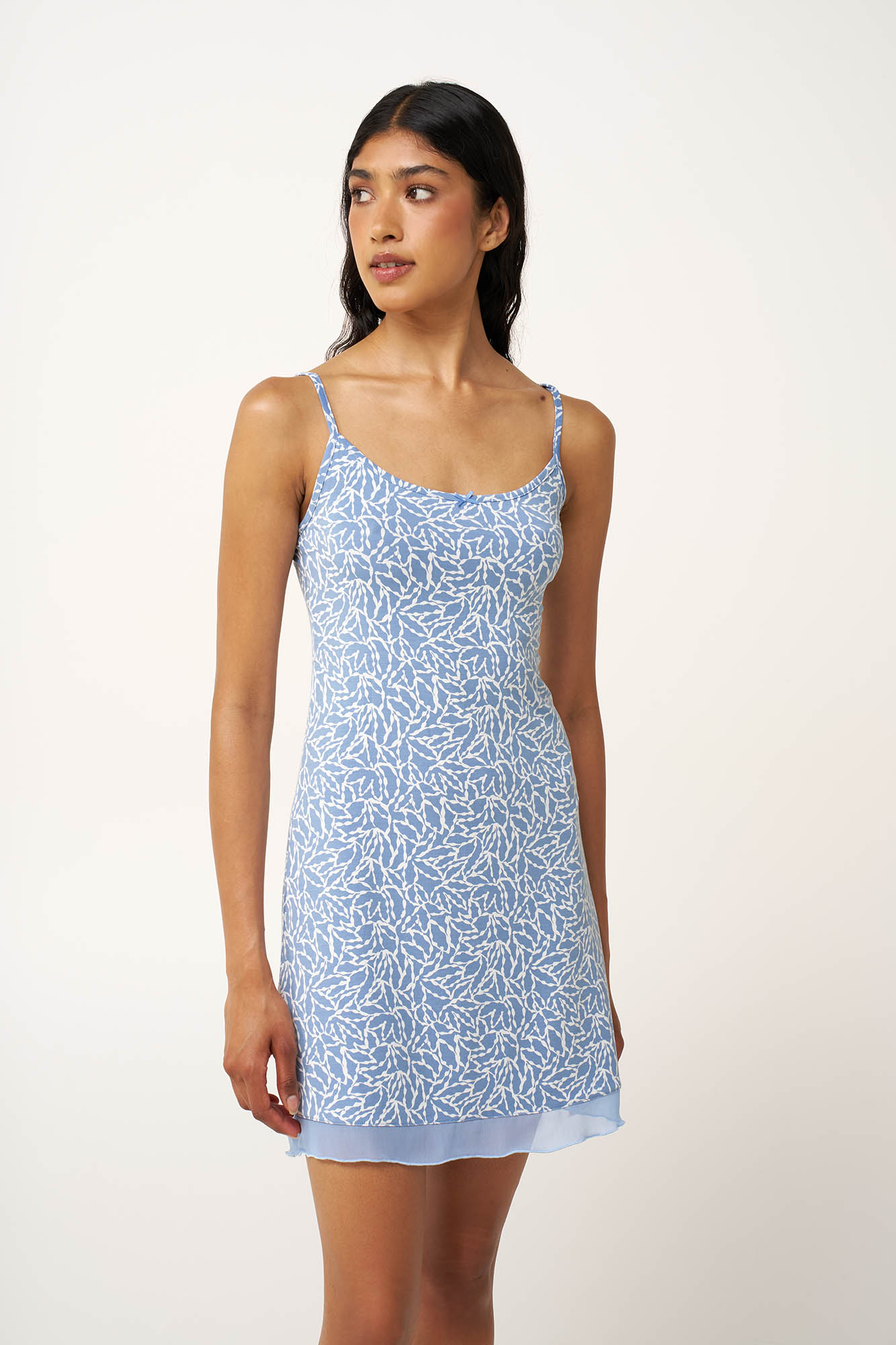 Αφεθείτε στην άνεση που προσφέρει αυτό το ανάλαφρο καλοκαιρινό νυχτικό από LENZING Tencel Modal Micro. Οι λεπτές τιράντες και η άνετη γραμμή του δημιουργούν μια αέρινη, θηλυκή σιλουέτα, ενώ το απαλό και διαπνέον ύφασμα γλιστρά απαλά πάνω στο σώμα χαρίζοντας άνεση όλη τη νύχτα. Το ήρεμο, θαλασσινό μοτίβο εμπνευσμένο από το καλοκαίρι προσθέτει μια αίσθηση γαλήνης και φρεσκάδας. Ιδανικό για κάθε στιγμή στο σπίτι τις πιο ζεστές ημέρες.