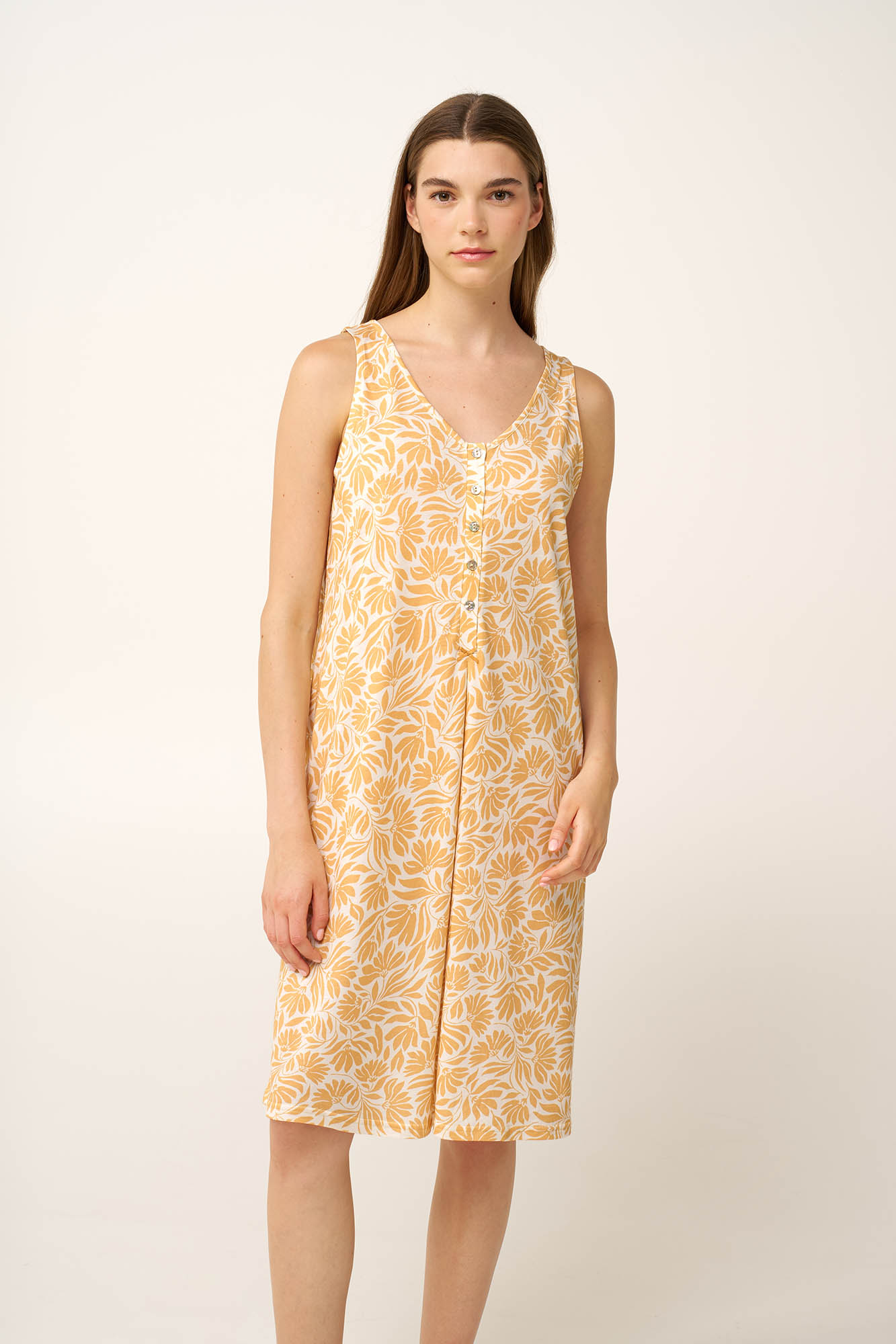 Ένα άνετο και προσεκτικά σχεδιασμένο καλοκαιρινό νυχτικό, κατασκευασμένο από ένα μαλακό, αναπνεύσιμο μείγμα βαμβακιού και modal. Το ελαφρύ ύφασμα είναι απαλό στο δέρμα, ιδανικό για ζεστές νύχτες και χαλαρές μέρες στο σπίτι. Η κλασική πιέτα με κουμπιά προσθέτει ευκολία και πρακτικότητα, καθιστώντας το ιδιαίτερα κατάλληλο για θηλασμό, ενώ η διακριτική πτυχή κάτω από την πιέτα δημιουργεί μια πιο χαλαρή, συγχωρητική εφαρμογή στο σώμα. Μια όμορφη επιλογή για νέες και μέλλουσες μητέρες που εκτιμούν τόσο την απαλότητα όσο και το διαχρονικό στυλ.