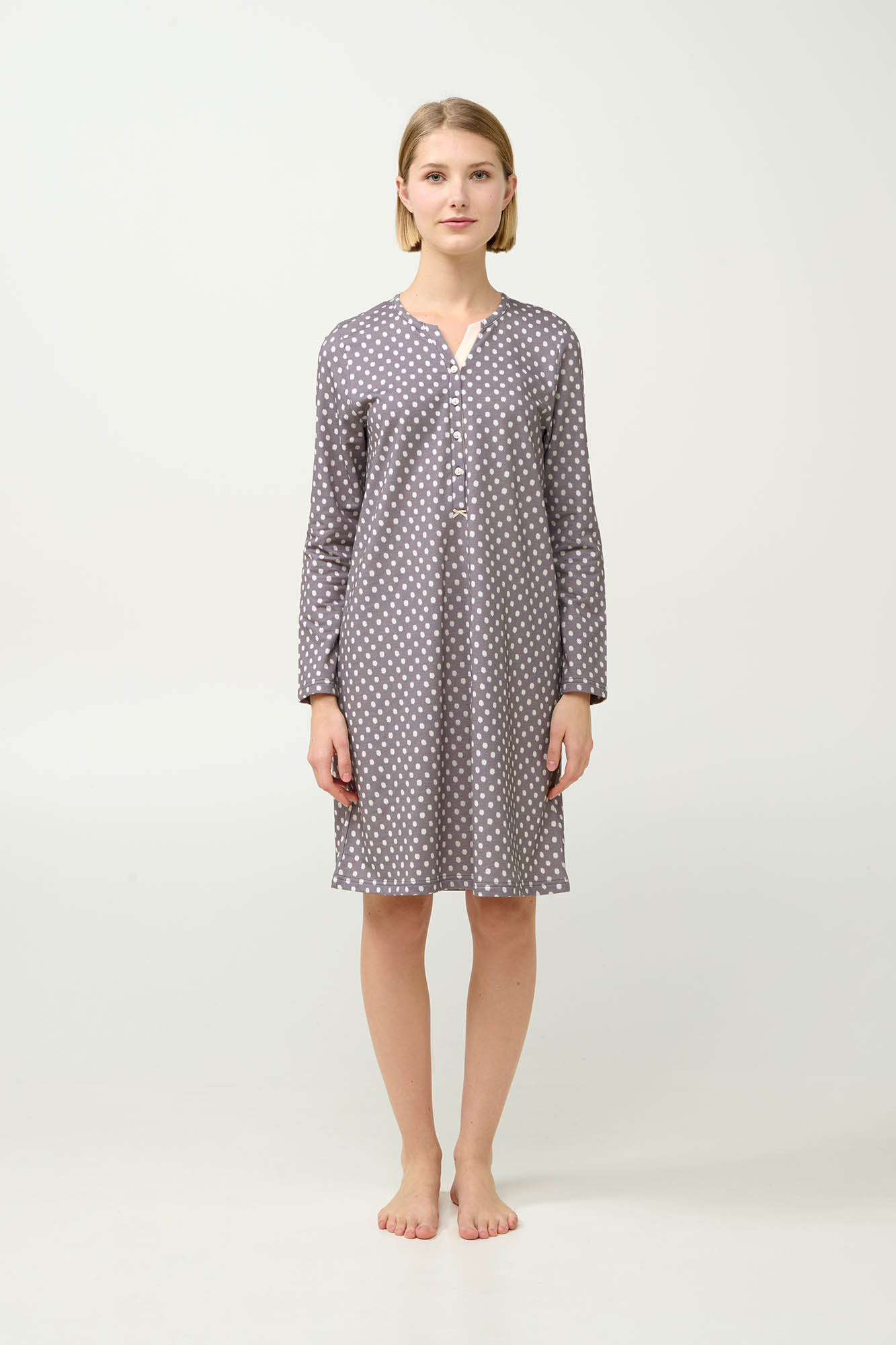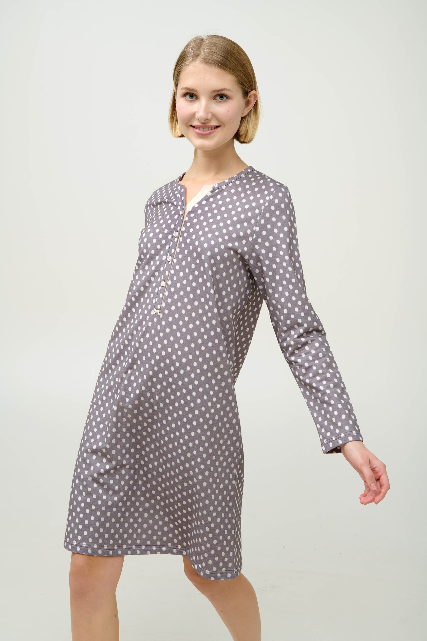 Προσθέστε απαλότητα στα βράδια σας με αυτό το γοητευτικό χειμερινό νυχτικό, φτιαγμένο από 100% βαμβάκι φούτερ που προσφέρει φυσική ζεστασιά και διαπνοή. Η πατιλέτα στο μπροστινό μέρος χαρίζει κλασική κομψότητα, ενώ το πουά μοτίβο ενισχύει τον διαχρονικό του χαρακτήρα. Ιδανικό να απολαύσετε ένα χαλαρό πρωινό ή ένα ήρεμο απόγευμα στον καναπέ μετά από μια μεγάλη ημέρα.