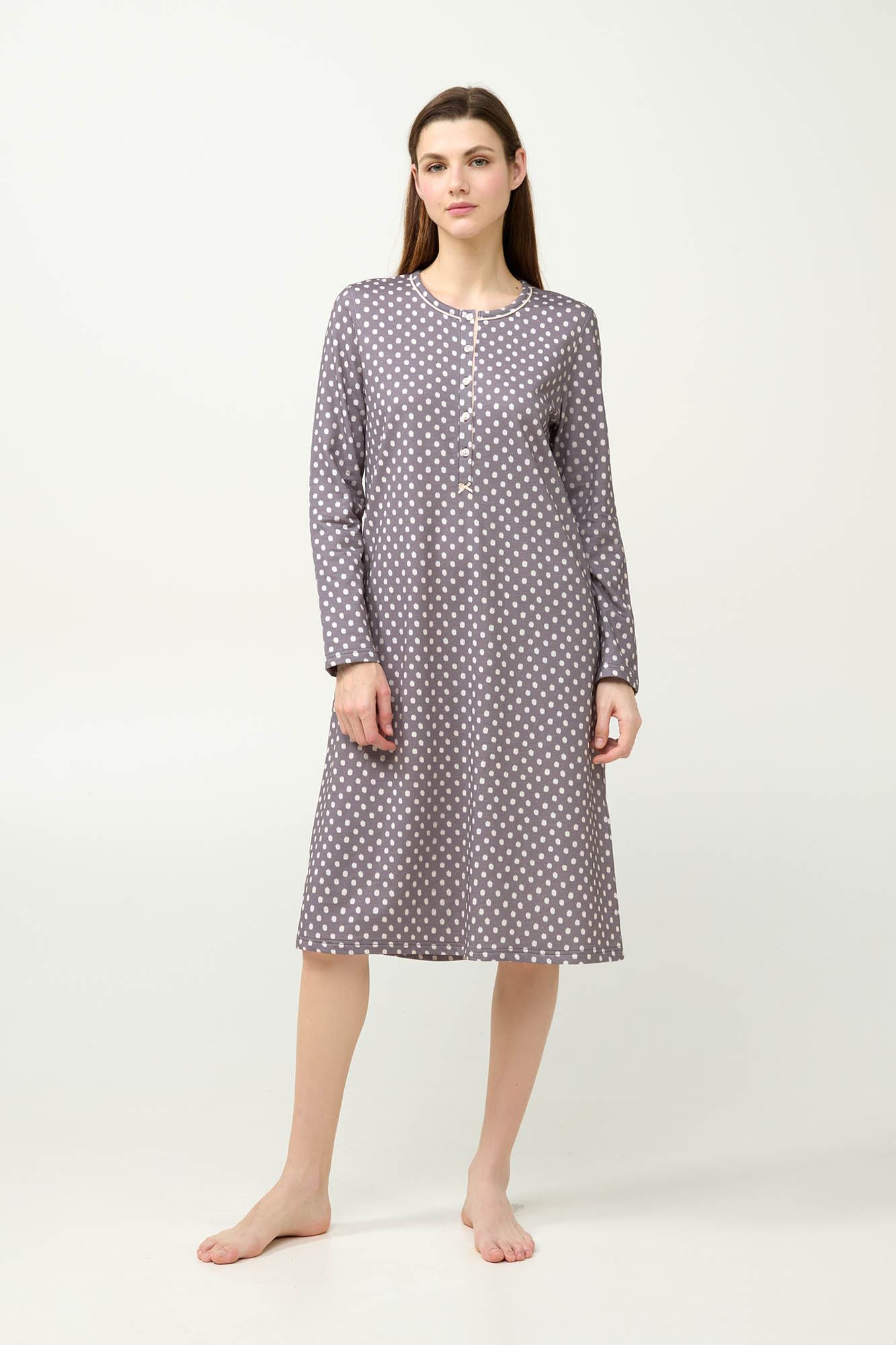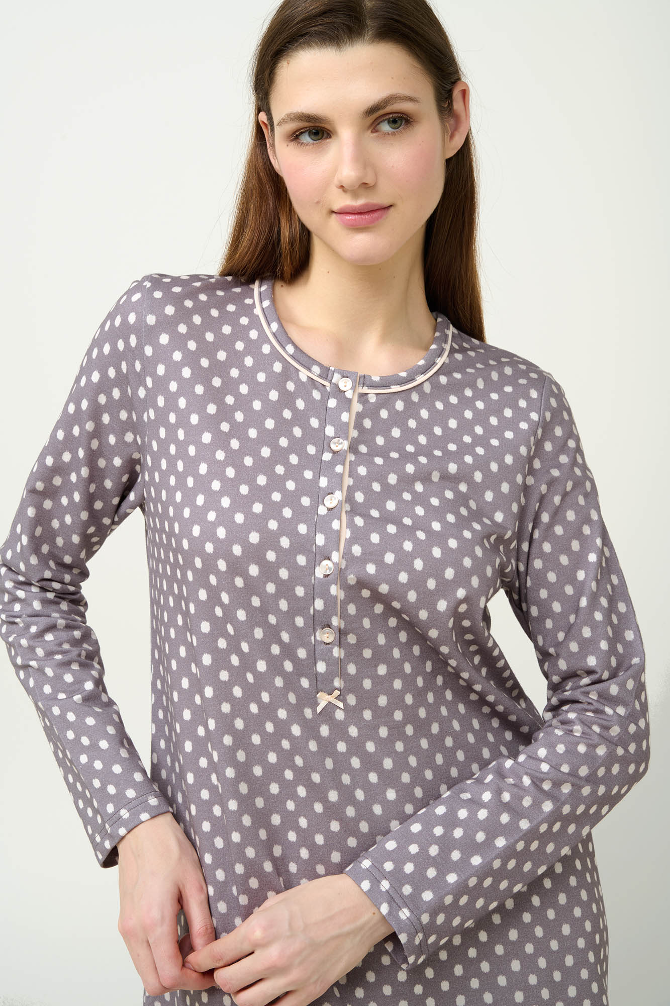 Υποδεχθείτε το χειμώνα με αυτό το απαλό και κομψό χειμερινό νυχτικό, φτιαγμένο από 100% διαπνέον βαμβάκι φούτερ που χαρίζει ζεστή αίσθηση και άνεση. Είναι σχεδιασμένο με κλασική πατιλέτα σε διαχρονικό πουά μοτίβο που ενισχύει τον διαχρονικό του χαρακτήρα. Μια εύκολη επιλογή που θα απολαύσετε κάθε στιγμή της ημέρας.