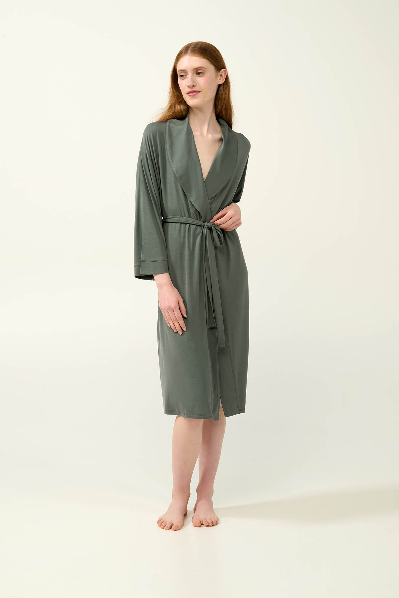 Συνοδέψτε το αγαπημένο σας νυχτικό ή πυτζάμα με μια άνετη πολυτελή σταυρωτή ρόμπα από LENZING Tencel Modal Micro. Φορέστε τη ρόμπα σας κλείνοντας την με την άνετη μακριά ζώνη της ή ανοιχτή για πιο ανάλαφρο στυλ. Τα μανίκια είναι σχεδιασμένα σε χαλαρή γραμμή και ακολουθούν ελεύθερα την κίνηση των χεριών σας. Απαλή στην αφή, επιτρέποντας στο δέρμα να αναπνέει, θα δώσει την άνεση που αναζητάτε στις στιγμές χαλάρωσης σας.
