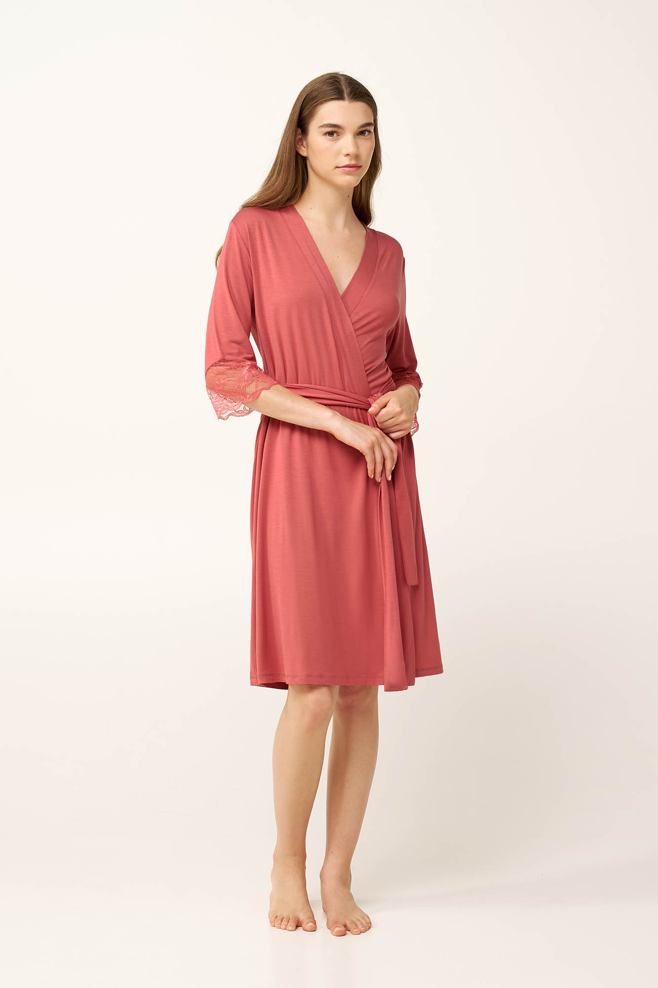 Ελαφριά και κομψή, αυτή η γυναικεία ρόμπα είναι σχεδιασμένη για να προσφέρει άνεση και διακριτική κομψότητα τα καλοκαιρινά βράδια στο σπίτι. Κατασκευασμένη από απαλό και διαπνέον LENZING Tencel Modal Micro, πέφτει φυσικά πάνω στο σώμα, χαρίζοντας μεταξένια αίσθηση. Ιδανική για να φορεθεί πάνω από το αγαπημένο σας homewear, συνδυάζει άνεση και διαχρονικό στυλ, συνοδεύοντας ιδανικά στιγμές χαλάρωσης και ήρεμα βράδια.