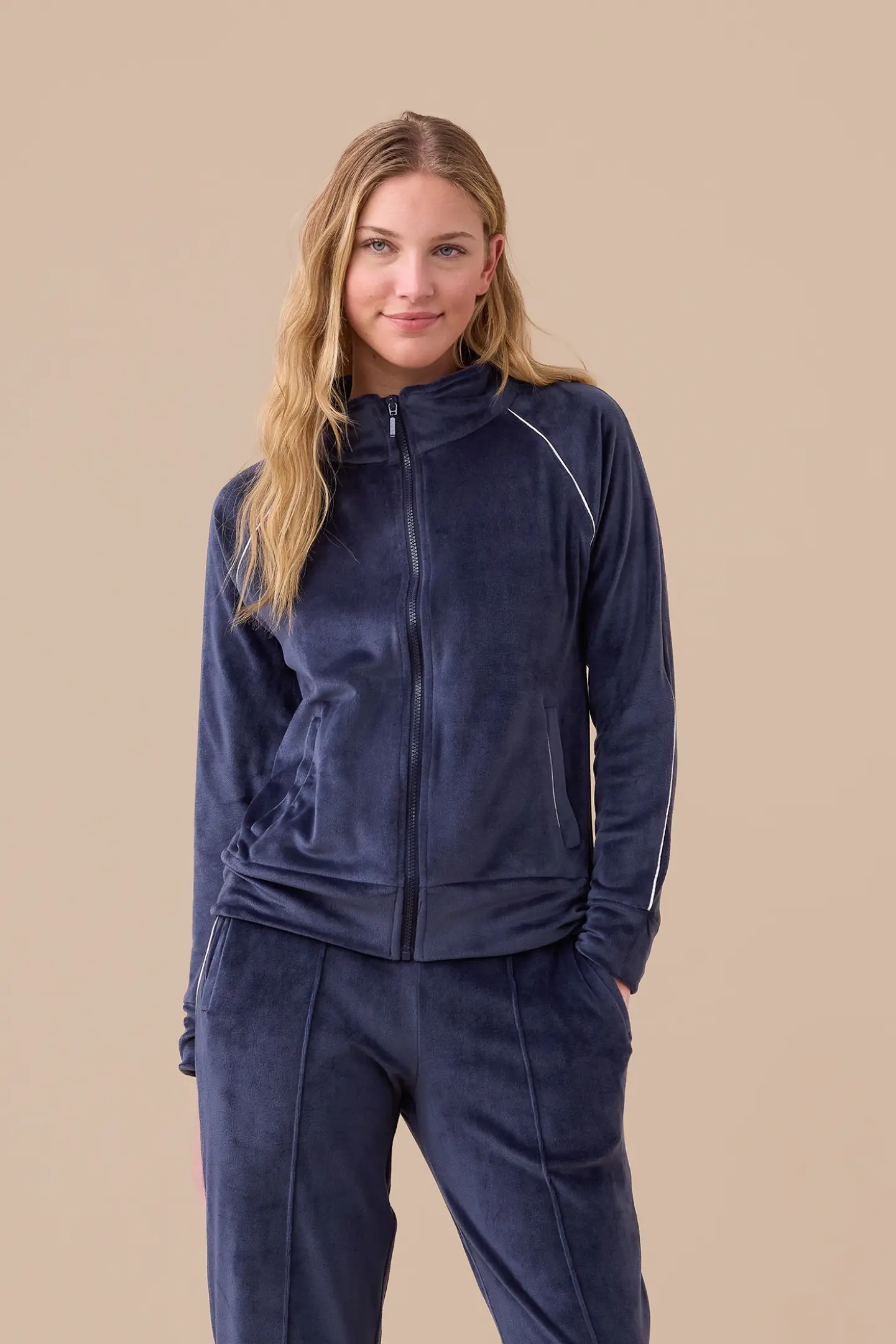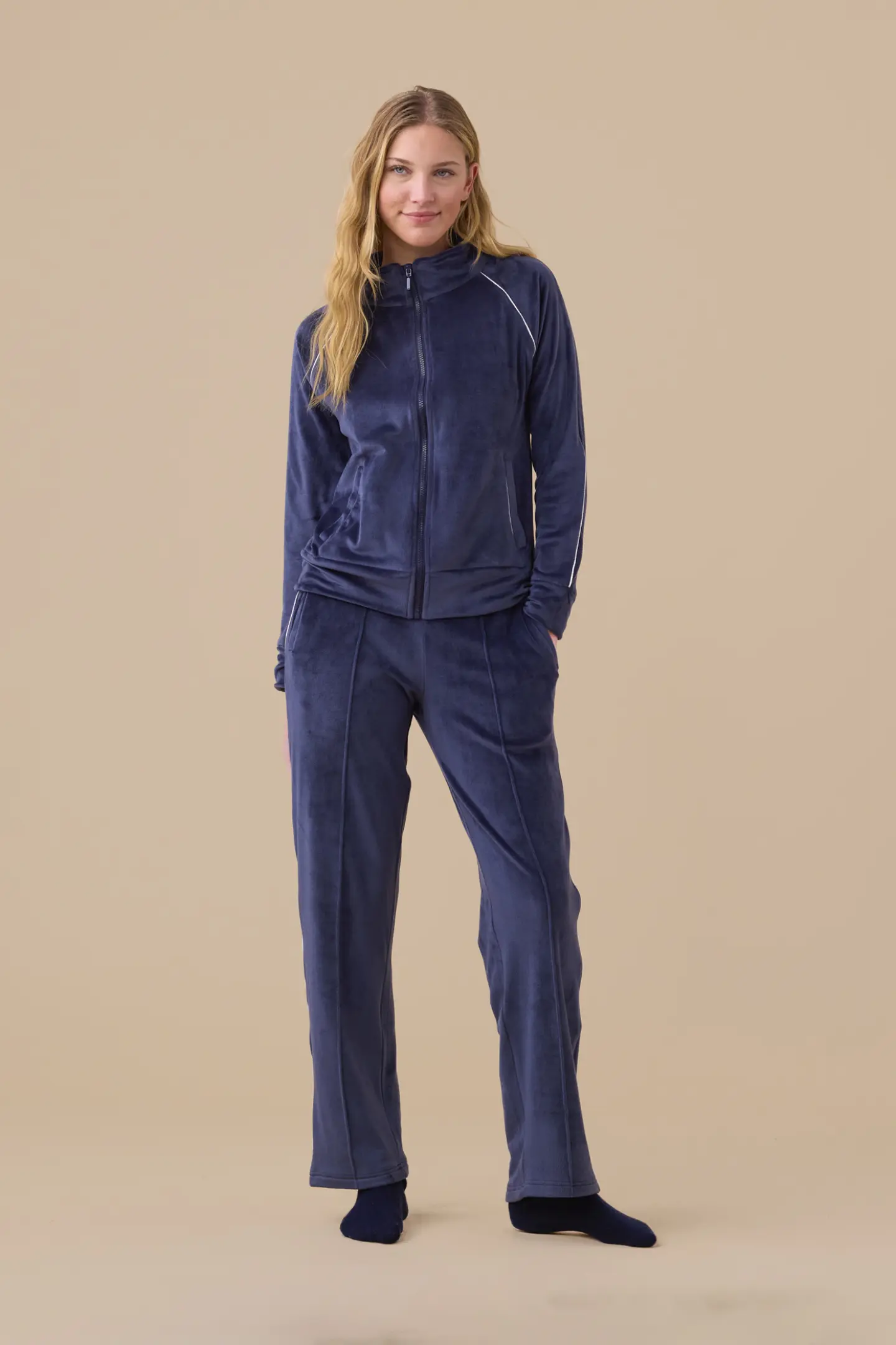Γυναικεία χειμωνιάτικη φόρμα  Noidinotte βελουτέ. Νεανικό Homewear Set πολύ ζεστό και απαλό. Ζακέτα με φερμουάρ  και παντελόνι μπλέ  με μαλακό λάστιχο στην μέση και ίσιο τελείωμα .