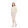 Γυναικεία φόρμα βελουτέ Pink Label σε sand χρώμα. Μπλούζα με στρογγυλή λαιμόκοψη και λάστιχο στα τελειώματα διακοσμημένο με λευκές και ροζ ρίγες. Παντελόνι σε ίσια γραμμή με μαλακό λάστιχο στην μέση και τσέπες.