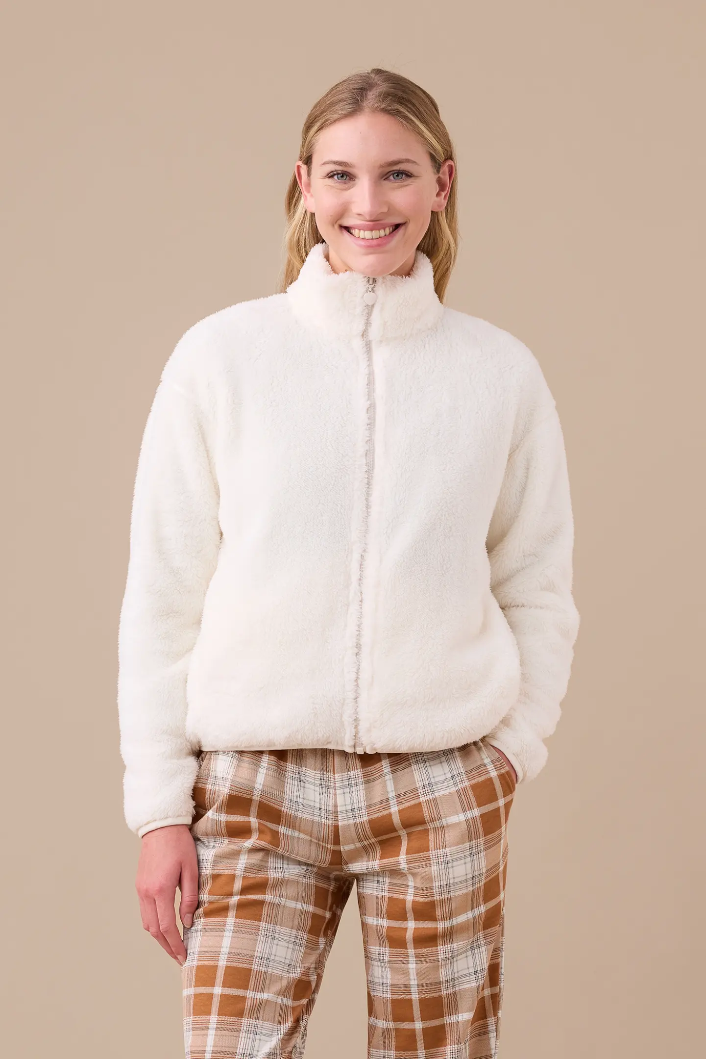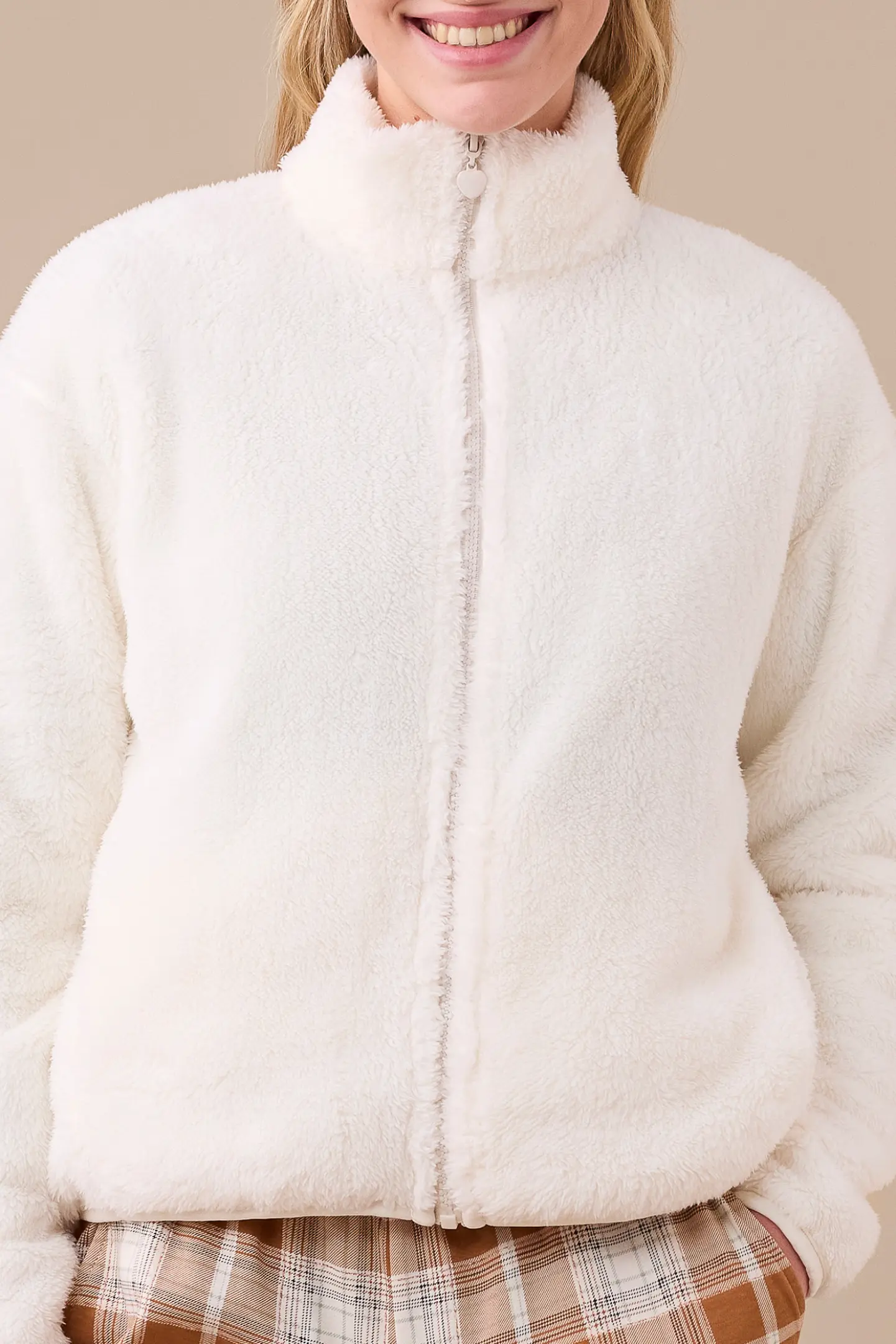 Γυναικεία χειμωνιάτικη ζακέτα Noidinotte. Ζεστή ζακέτα λούτρινη σε Ιβουάρ χρώμα με φερμουάρ και ψηλό γιακά.