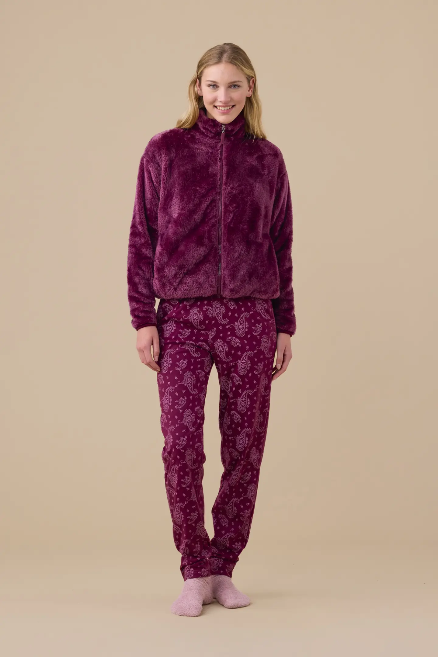Γυναικεία χειμωνιάτικη ζακέτα Noidinotte. Ζεστή ζακέτα λούτρινη σε Μπορντό χρώμα με φερμουάρ και ψηλό γιακά.