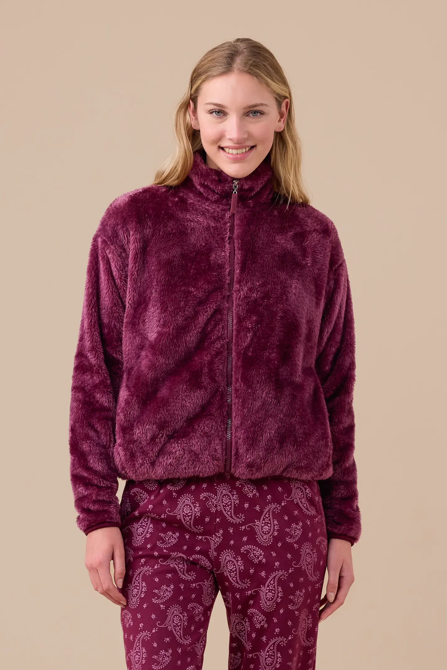 Γυναικεία χειμωνιάτικη ζακέτα Noidinotte. Ζεστή ζακέτα λούτρινη σε Μπορντό χρώμα με φερμουάρ και ψηλό γιακά.