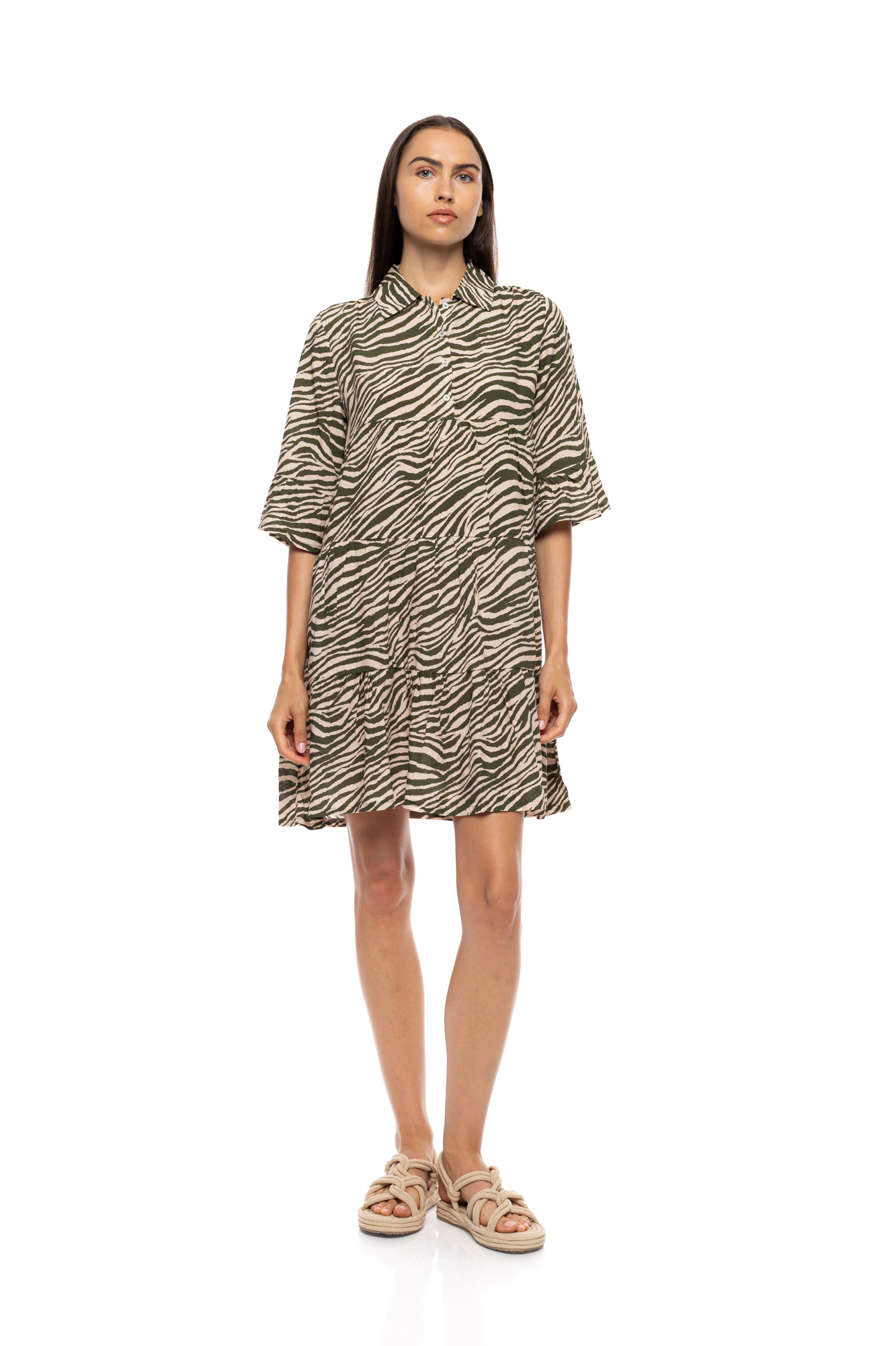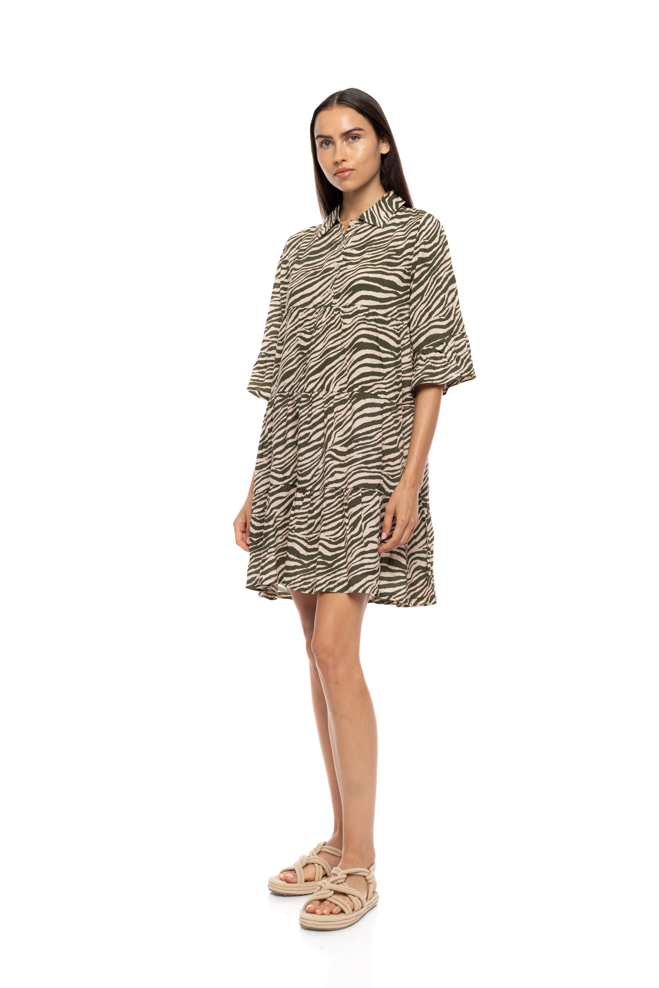 Γυναικείο Beachdress Pink Label - BILBAO GREEN LEO - 3/4 Μανίκι - Με Πατιλέτα - Viscose