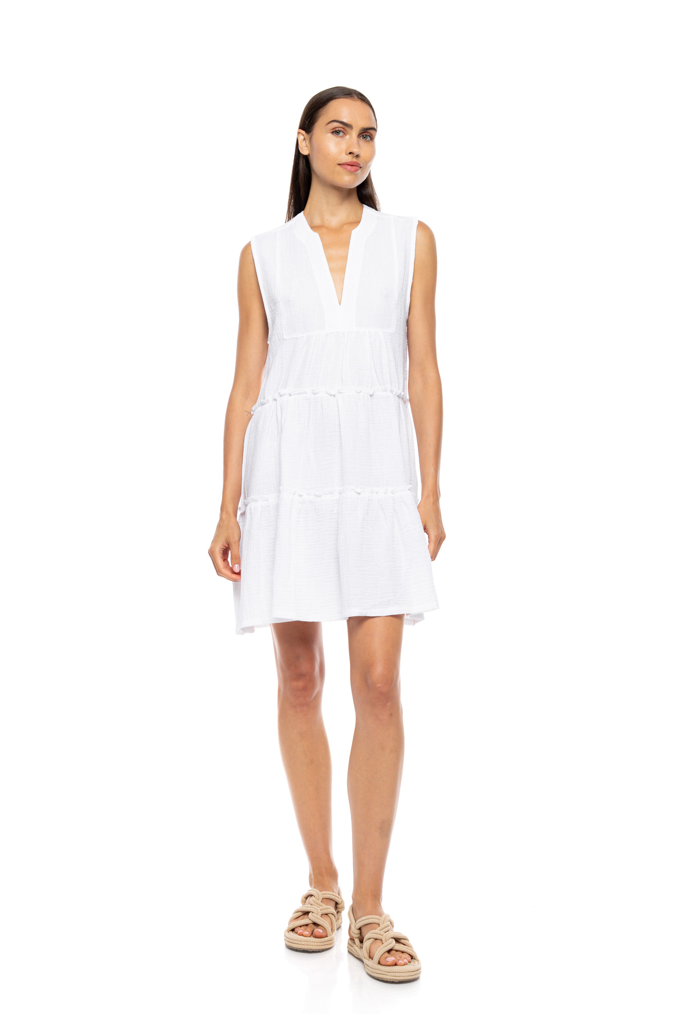 Γυναικείο Beachdress Pink Label - SUMMER COTTON - Λευκό Αμάνικο - Με V-Neck - Cotton