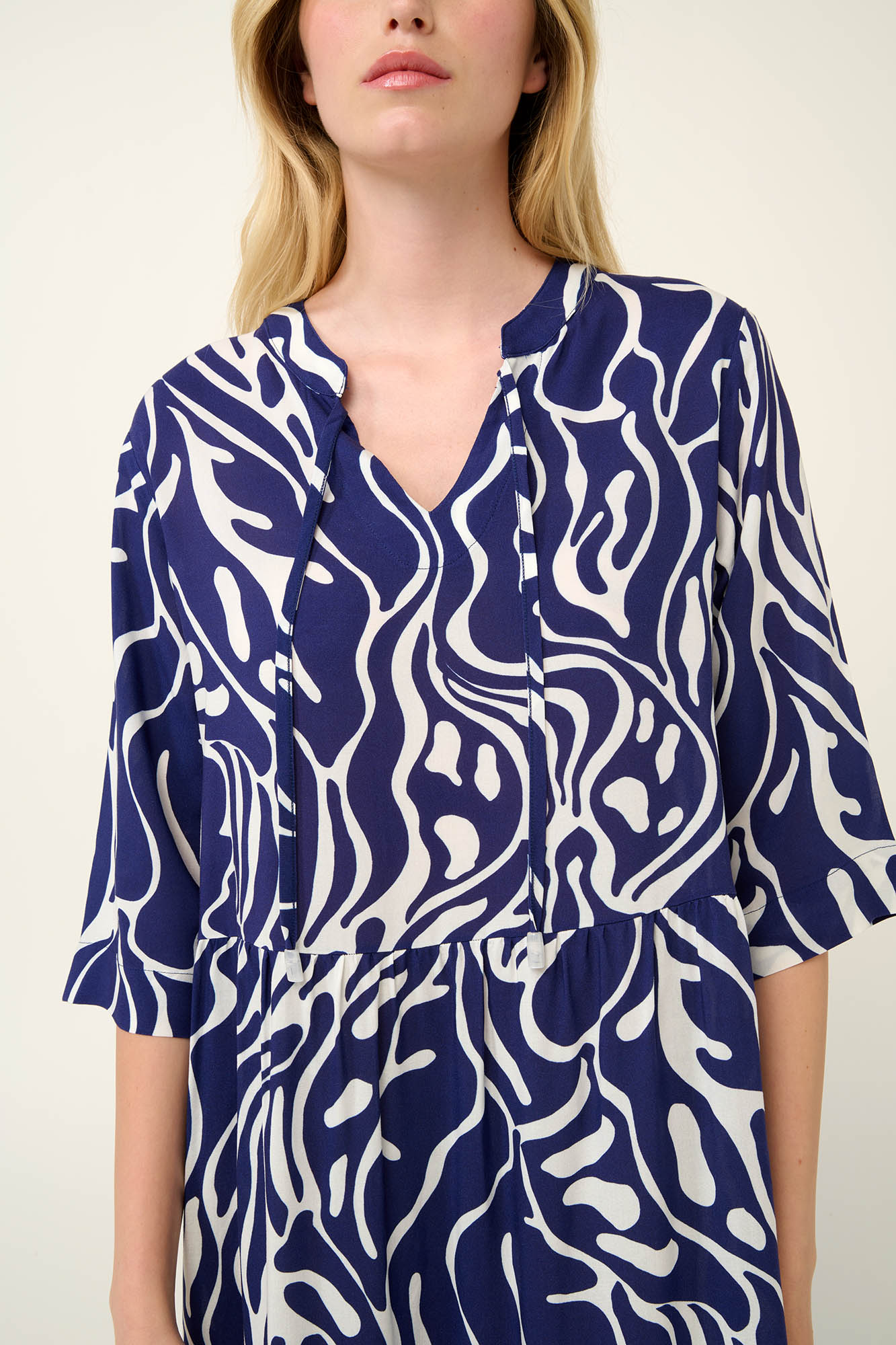 Ανανεώστε τη διάθεση σας με ένα αέρινο καλοκαιρινό φόρεμα, διακοσμημένο με εντυπωσιακό τύπωμα κοραλλιού εμπνευσμένο από το Αιγαίο. Φτιαγμένο από απαλή ποπλίνα, χαρίζει δροσερή και ανάλαφρη αίσθηση. Η V λαιμόκοψη με διακριτικά δεσίματα προσθέτει κομψότητα, ενώ η χαλαρή, χυτή γραμμή του προσφέρουν κίνηση σε κάθε βήμα. Ιδανικό για καλοκαιρινές βόλτες και χαλαρές, κομψές εμφανίσεις.