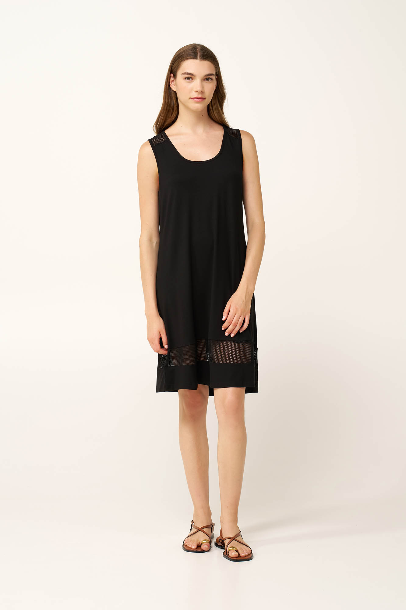Ανανεώστε την συλλογή σας με αυτό το καλοκαιρινό φόρεμα από απαλό και δροσερό μείγμα viscose και elastane, που σας προσφέρει ελαφριά αίσθηση και διακριτική ελαστικότητα. Οι mesh λεπτομέρειες στο επάνω μέρος της πλάτης, στους ώμους και στο τελείωμα προσθέτουν υφή και μια εκλεπτυσμένη αντίθεση. Σχεδιασμένο με στρογγυλή λαιμόκοψη και χαλαρή γραμμή, ισορροπεί ανάμεσα στην απλότητα και το μοντέρνο του χαρακτήρα. Ένα φόρεμα που θα φορέσετε με ευκολία από το πρωί ως το βράδυ.