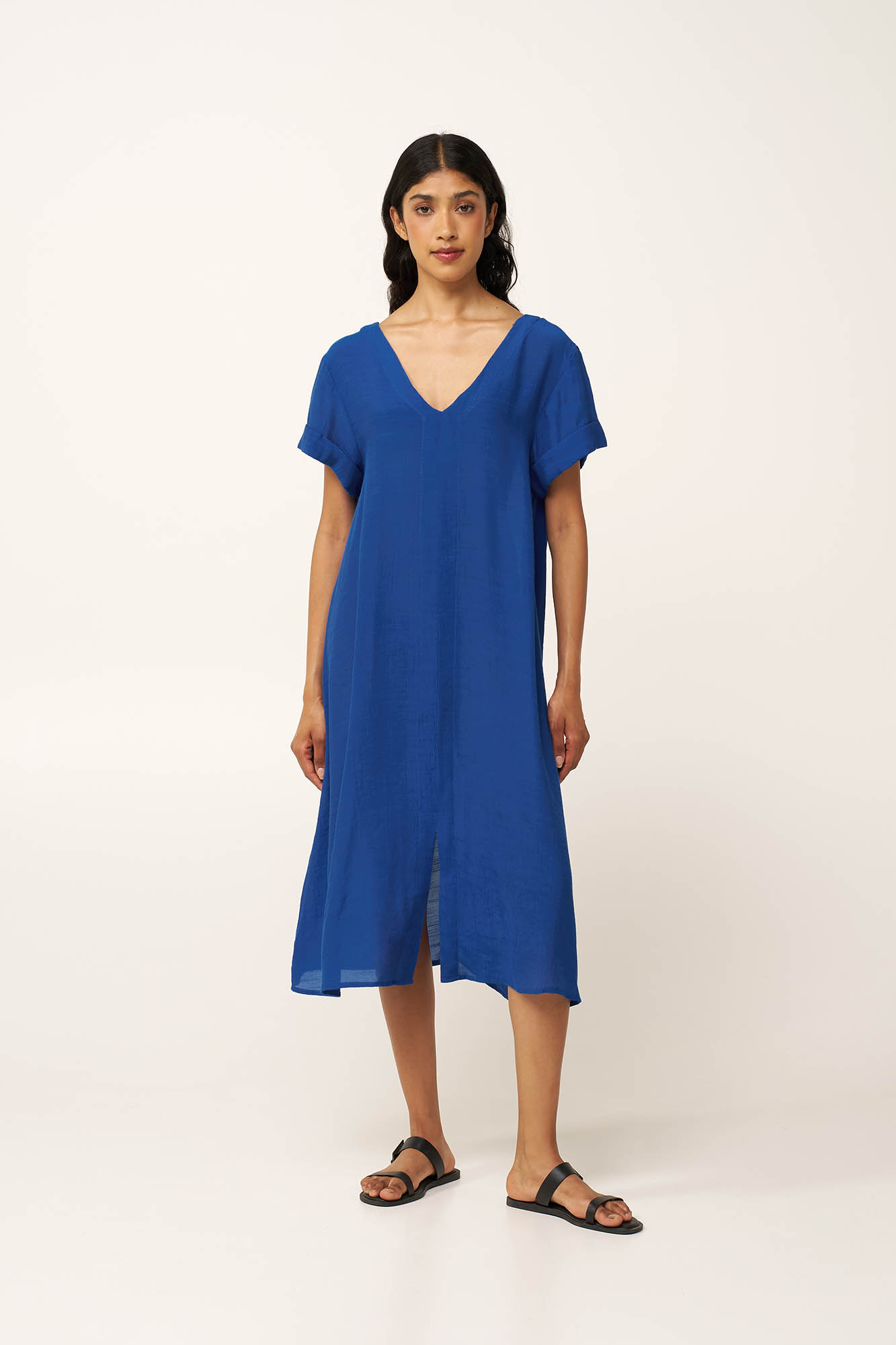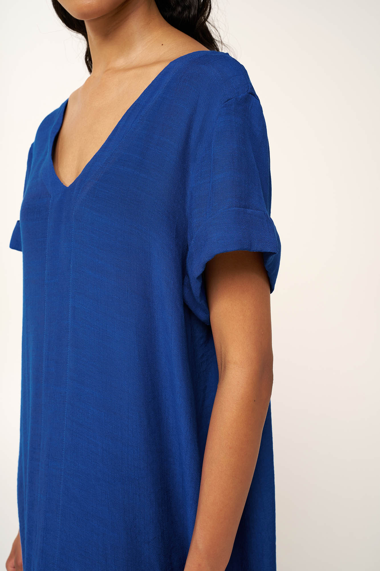 Ανανεώστε την καλοκαιρινή σας γκαρνταρόμπα με αυτό το αέρινο φόρεμα θαλάσσης από ελαφρύ μείγμα γάζας με ανάγλυφη αίσθηση. Σχεδιασμένο με λαιμόκοψη V, δένει στη πλάτη και έχει ένα διακριτικό σκίσιμο στο μπροστινό μέρος που χαρίζει ευκολία στην κίνηση. Με κοντά μανίκια και χαλαρή εφαρμογή, πέφτει ανάλαφρα στο σώμα και αποτελεί ιδανική επιλογή για βόλτες στην παραλία, χαλαρές καλοκαιρινές συναντήσεις ή ηλιόλουστες στιγμές δίπλα στη θάλασσα.