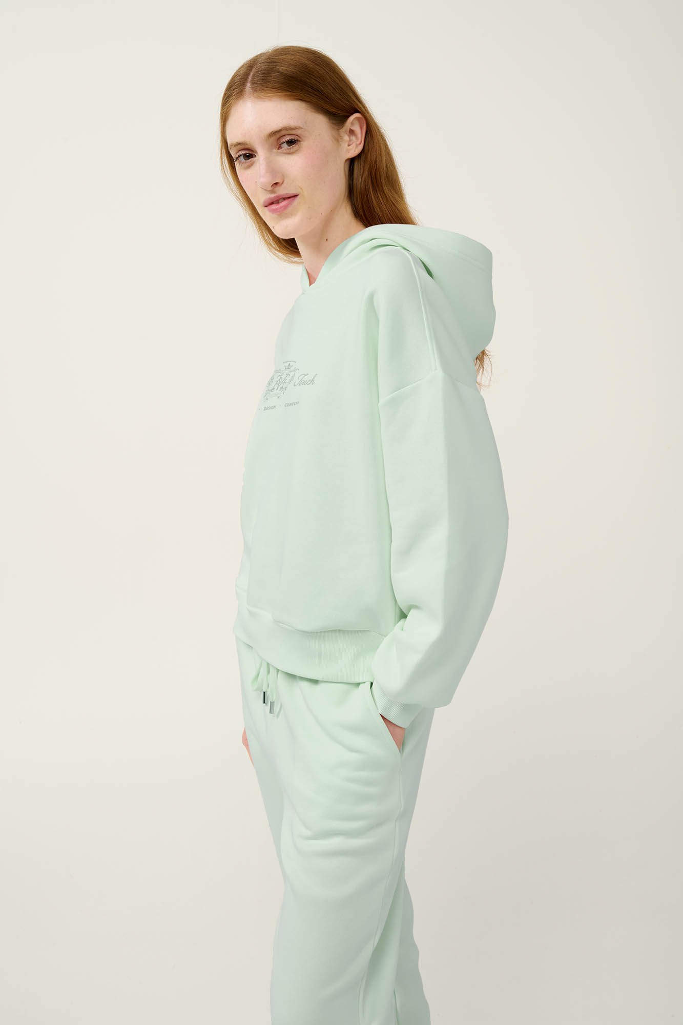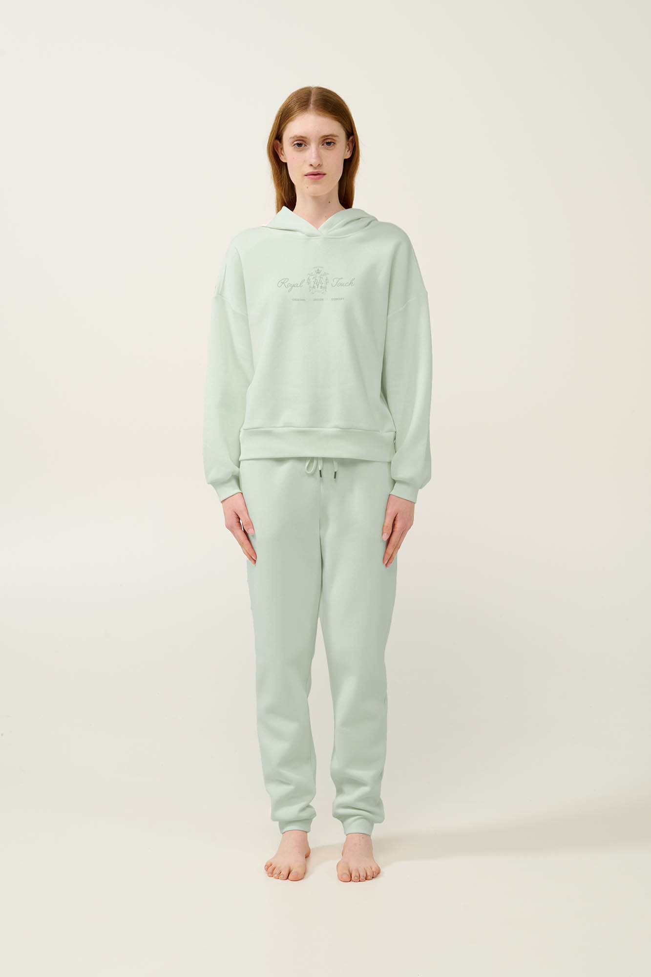 Επιλέξτε μια γυναικεία χειμερινή φόρμα σε απαλές παστέλ αποχρώσεις, κατασκευασμένη από πλούσιο σε βαμβάκι φούτερ, με ζεστή και απαλή υφή, ιδανική για χαλάρωση στο σπίτι αλλά και για casual εξόδους. Το πάνω μέρος είναι σχεδιασμένο με κουκούλα, διακριτικό τύπωμα στο στήθος, μανσέτες στα μανίκια και λάστιχο στη μέση για άνετη εφαρμογή. Το σετ συμπληρώνει ένα παντελόνι με τσέπες στο πλάι και μανσέτες στο τελείωμα.. Ένα καθημερινό σετ που θα σας χαρίσει άνεση και πρακτικότητα.