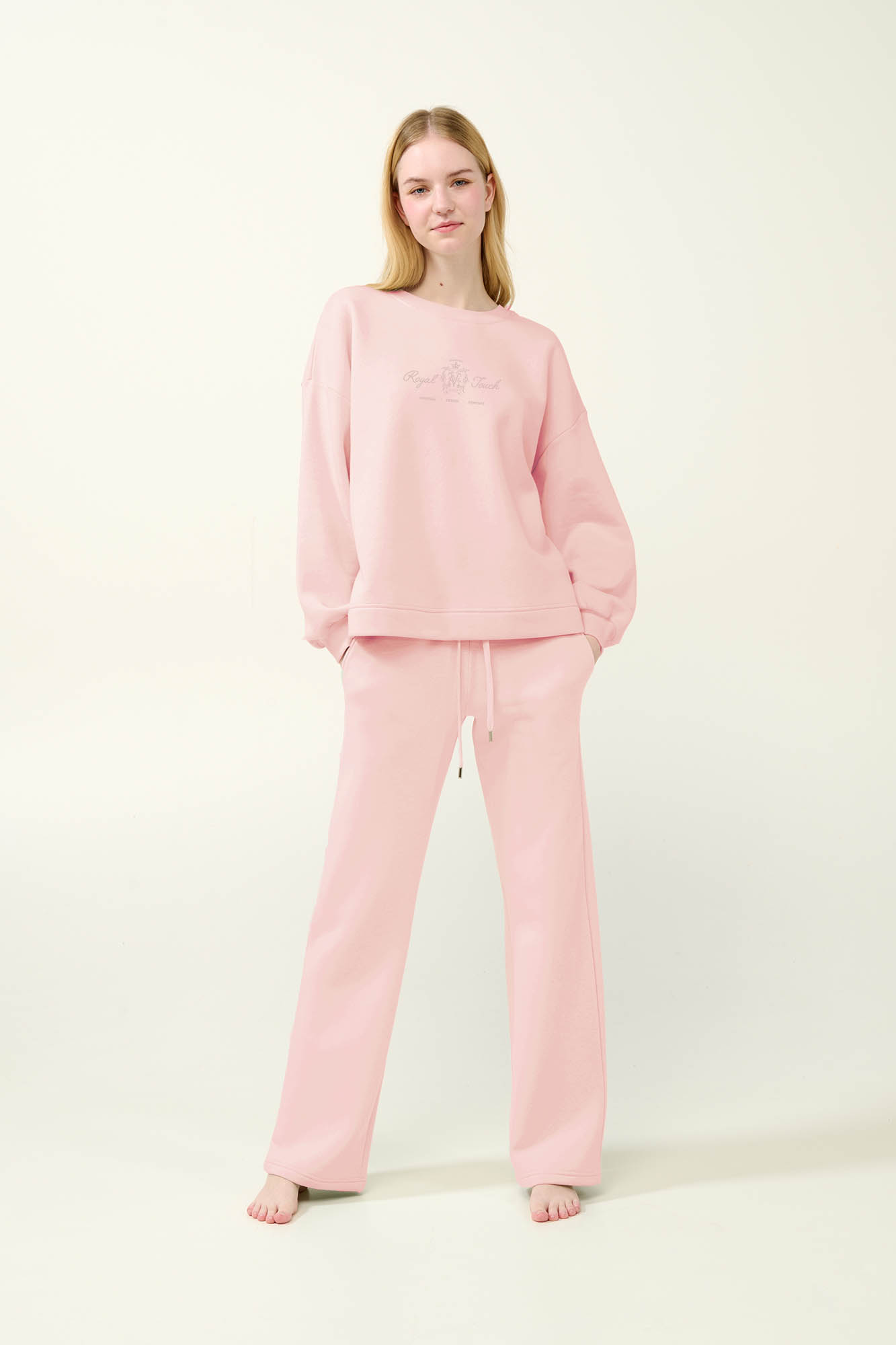 Επιλέξτε μια γυναικεία χειμερινή φόρμα σε απαλές παστέλ αποχρώσεις, κατασκευασμένη από πλούσιο σε βαμβάκι φούτερ, με ζεστή και απαλή υφή, ιδανική για χαλάρωση στο σπίτι αλλά και για casual εξόδους. Το πάνω μέρος είναι σχεδιασμένο με μανσέτες στα μανίκια για άνετη εφαρμογή και διακριτικό τύπωμα στο στήθος ενώ το παντελόνι διαθέτει τσέπες στο πλάι. Ένα καθημερινό σετ που θα σας χαρίσει άνεση και πρακτικότητα.