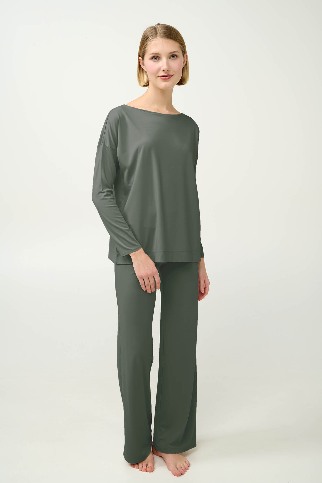 Απολαύστε στυλ και άνεση με αυτό το μακρυμάνικο τοπ, φτιαγμένο από απαλό, ελαστικό ύφασμα. Το λιτό του σχέδιο χαρίζει διαχρονική κομψότητα, ενώ η χαλαρή γραμμή προσφέρει ελευθερία κινήσεων. Ιδανικό για στιγμές χαλάρωσης στο σπίτι ή για ελαφριές δραστηριότητες, συνδυάζεται εύκολα με το αγαπημένο σας παντελόνι για ένα κομψό και άνετο σύνολο.