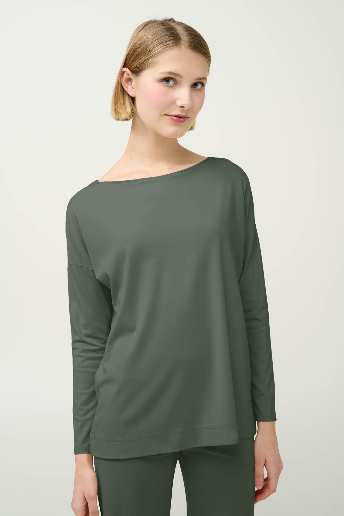 Απολαύστε στυλ και άνεση με αυτό το μακρυμάνικο τοπ, φτιαγμένο από απαλό, ελαστικό ύφασμα. Το λιτό του σχέδιο χαρίζει διαχρονική κομψότητα, ενώ η χαλαρή γραμμή προσφέρει ελευθερία κινήσεων. Ιδανικό για στιγμές χαλάρωσης στο σπίτι ή για ελαφριές δραστηριότητες, συνδυάζεται εύκολα με το αγαπημένο σας παντελόνι για ένα κομψό και άνετο σύνολο.