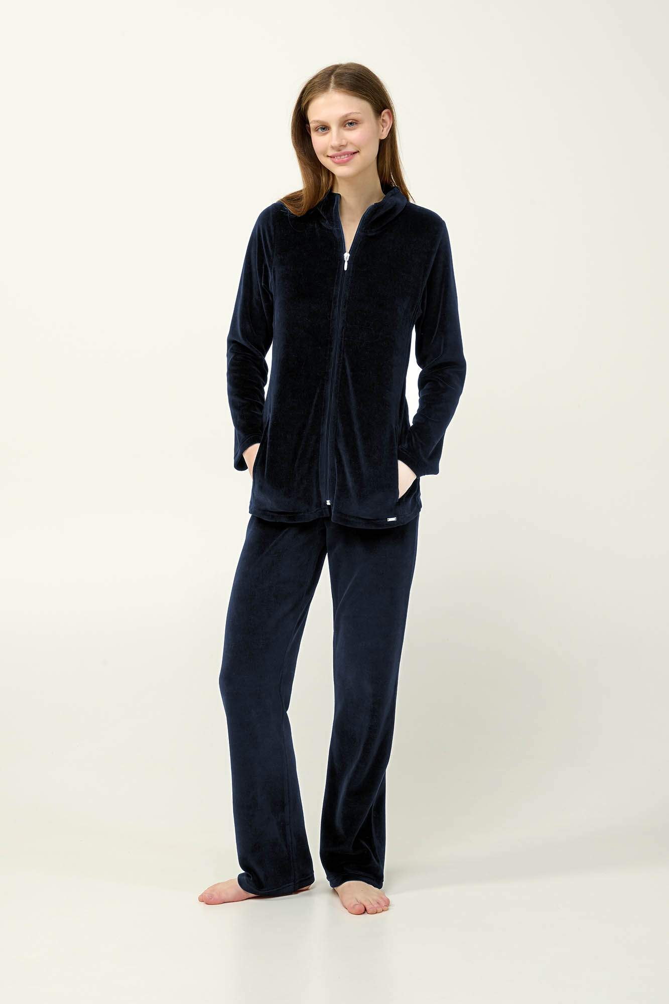 Προσθέστε στην χειμερινή σας γκαρνταρόμπα αυτό το γυναικείο σετ φόρμες, κατασκευασμένο από πλούσιο σε βαμβάκι βελούδο με απαλή και πολυτελή υφή. Σχεδιασμένο με μακριά μανίκια και κανονική εφαρμογή, κλείνει μπροστά με φερμουάρ και είναι ιδανικό για χαλάρωση στο σπίτι τις κρύες ημέρες ή casual εξόδους.