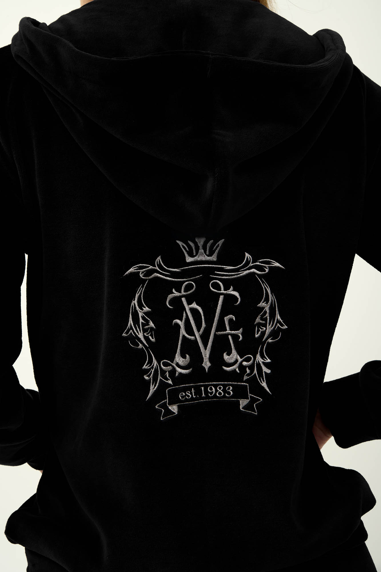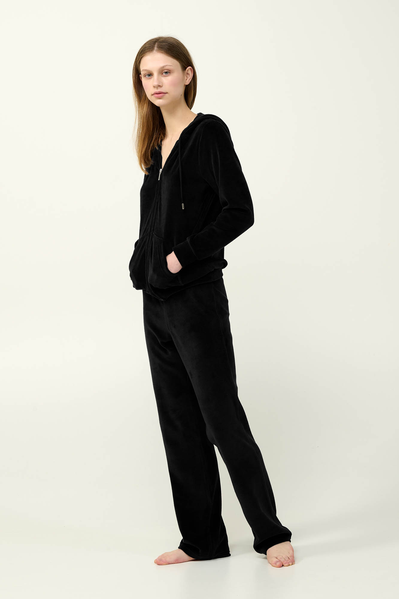 Ανακαλύψτε απόλυτη άνεση με αυτό το γυναικείο χειμερινό σετ φόρμας, κατασκευασμένο από βελούδο πλούσιο σε βαμβάκι για απαλή και πολυτελή υφή. Το πάνω μέρος διαθέτει φερμουάρ, πλαϊνές τσέπες και εντυπωσιακό τύπωμα στην πλάτη. Είναι σχεδιασμένο με κουκούλα, μακριά μανίκια με μανσέτες και λάστιχο στη μέση για βέλτιστη εφαρμογή. Μια ιδανική επιλογή για χαλάρωση στο σπίτι τις κρύες ημέρες ή casual εξόδους.