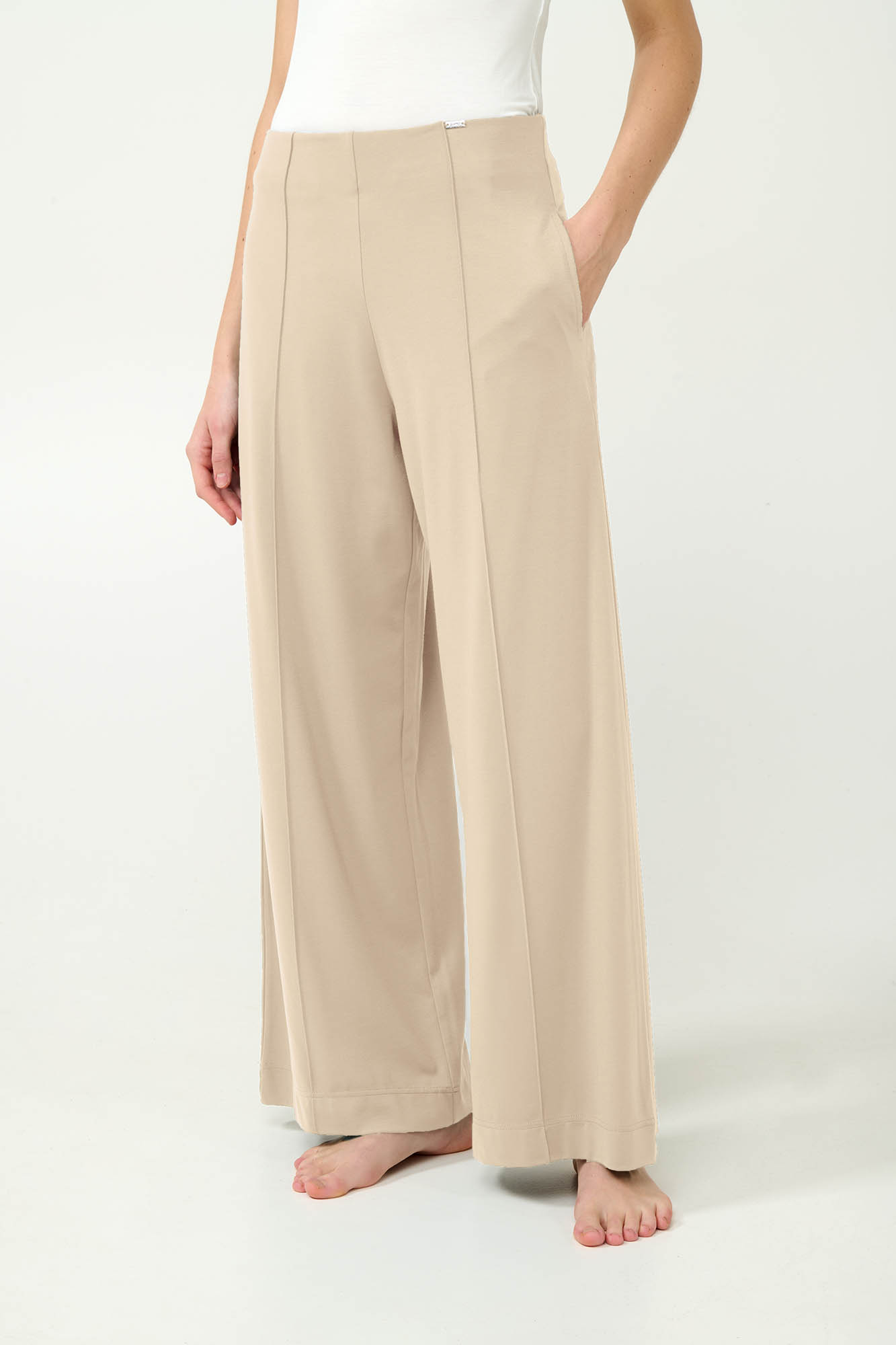 Απολαύστε άνεση και ελευθερία κινήσεων με αυτό το γυναικείο lounge παντελόνι σε φαρδιά γραμμή. Κατασκευασμένο από απαλό ελαστικό ύφασμα , διαθέτει μέση σε μεσαίο ύψος, διακοσμητική ραφή μπροστά και πρακτικές πλαϊνές τσέπες. Ιδανικό για casual εμφανίσεις ή χαλαρές μέρες στο σπίτι με άνεση και κομψότητα.