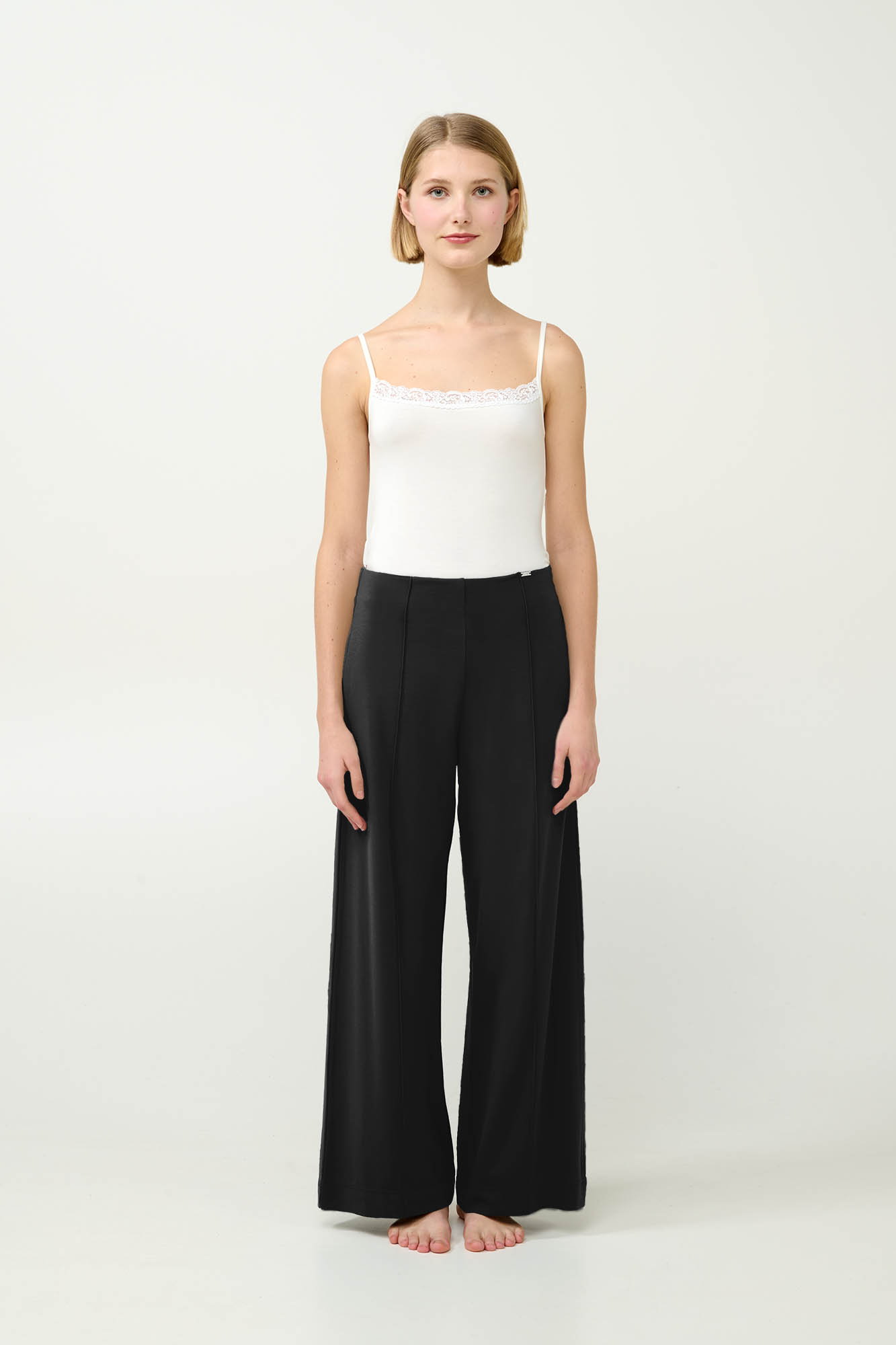 Απολαύστε άνεση και ελευθερία κινήσεων με αυτό το γυναικείο lounge παντελόνι σε φαρδιά γραμμή. Κατασκευασμένο από απαλό ελαστικό ύφασμα , διαθέτει μέση σε μεσαίο ύψος, διακοσμητική ραφή μπροστά και πρακτικές πλαϊνές τσέπες. Ιδανικό για casual εμφανίσεις ή χαλαρές μέρες στο σπίτι με άνεση και κομψότητα.