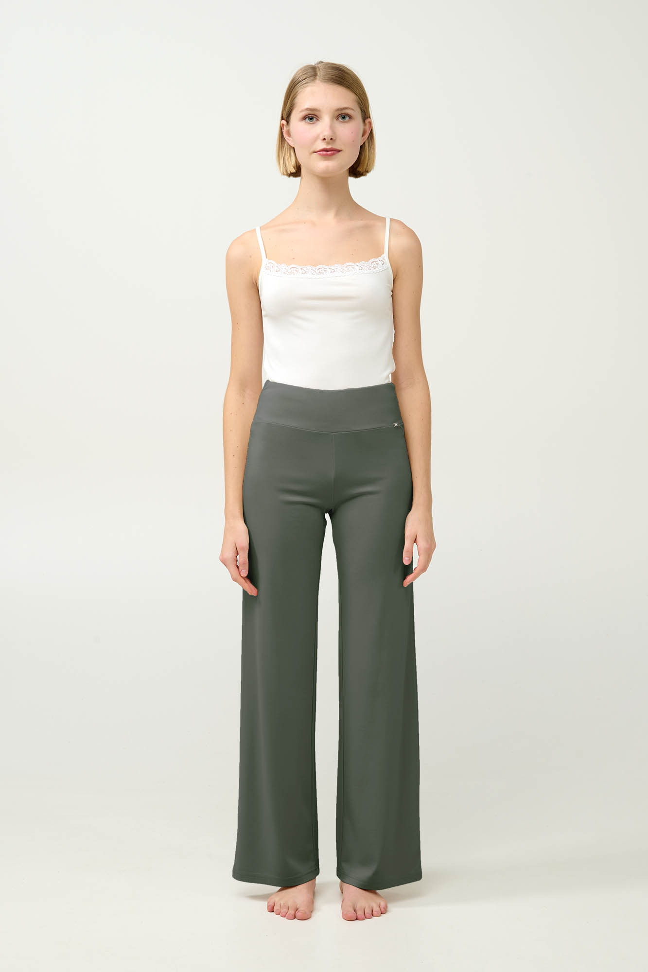 Απολαύστε άνεση και ελευθερία κινήσεων με αυτό το φαρδύ, ψηλόμεσο lounge παντελόνι, κατασκευασμένο από απαλό και ελαστικό ύφασμα που αναδεικνύει το σώμα σας Ιδανικό για ελαφριά αθλητική δραστηριότητα όπως pilates, casual εμφανίσεις ή χαλαρές στιγμές στο σπίτι. Μια απαραίτητη προσθήκη στην καθημερινή σας γκαρνταρόμπα.