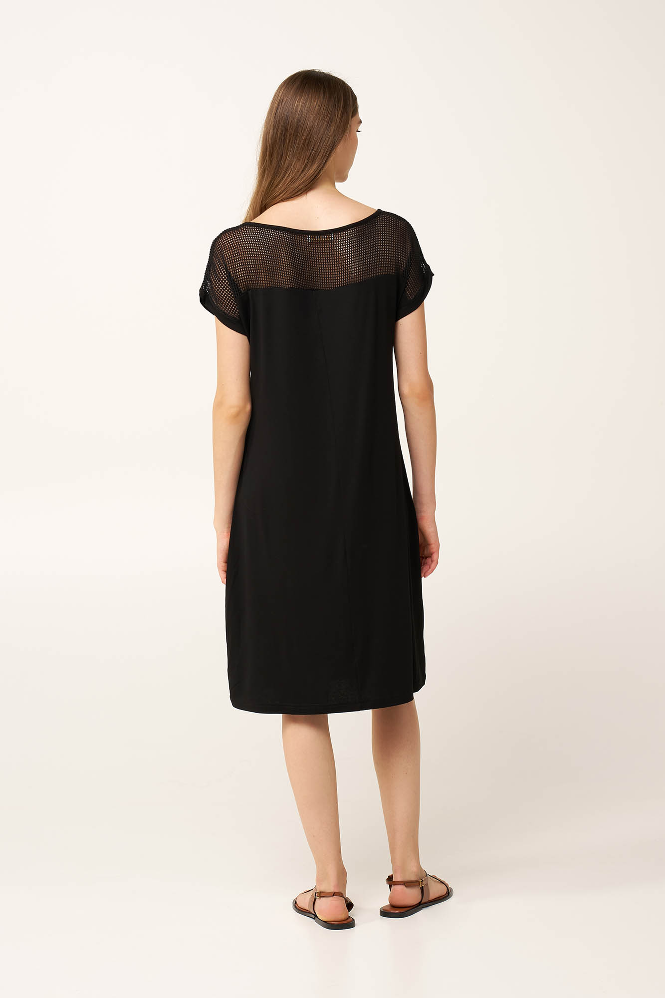 Προσθέστε στην γκαρνταρόμπα σας αυτό το εντυπωσιακό φόρεμα από απαλό και δροσερό μείγμα viscose και elastane. Οι μαύρες mesh λεπτομέρειες στο στήθος και στα μανίκια δημιουργούν μια τολμηρή, αντίθεση με το λείο, ελαστικό ύφασμα. Η θηλυκή σιλουέτα σας προσφέρει άνεση και ελευθερία κινήσεων. Μίνιμαλ, με σύγχρονη αισθητική θα το φορέσετε ξανά και ξανά όλο το καλοκαίρι, από το πρωί, ως το βράδυ.
