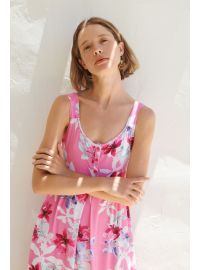 Γυναικείο Νυχτικό Pink Label - Midi φλοράλ - Κοντό μανίκι