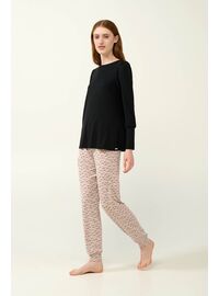 Γυναικεία πυτζάμα Pink Label. Μακρυμάνικη πυτζάμα με τύπωμα φθινοπωρινά φύλλα σε γήινους τόνους με πατιλέτα. Παντελόνι μονόχρωμο σε ίσια γραμμή με...