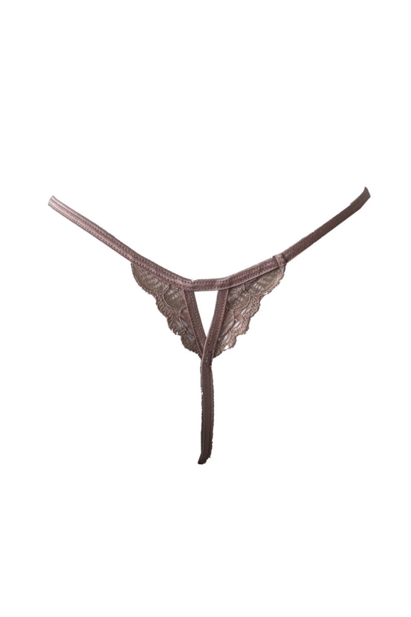 Slip string MED AVELINE - Μπέζ - Sexy Σχέδιο - Δαντέλα - Polyester