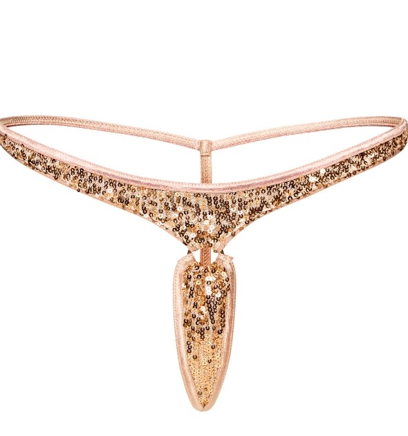 Γυναικείο string slip MED X-mas συνδυάζει υπέροχα το ρόζ χρυσό της παγιέτας σε σχήμα φιόγκου. Sexy String κορδόνι.