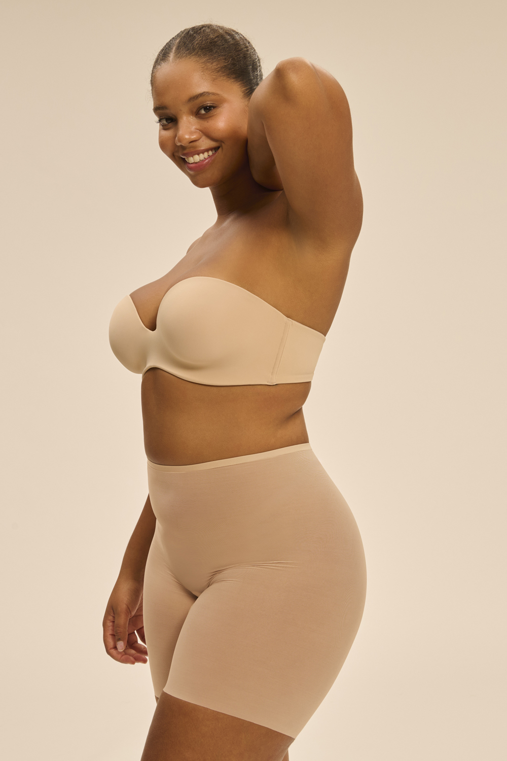 Γυναικείο μπεζ Strapless σουτιέν Simone Pérèle για πλούσιο στήθος που γίνεται ένα με το δέρμα, συνδυάζει στυλ και πρακτικότητα. Σουτιέν με μπανέλα και απαλά Cups χωρίς ραφές και αφαιρούμενα επιθέματα που δε διαγράφουν.