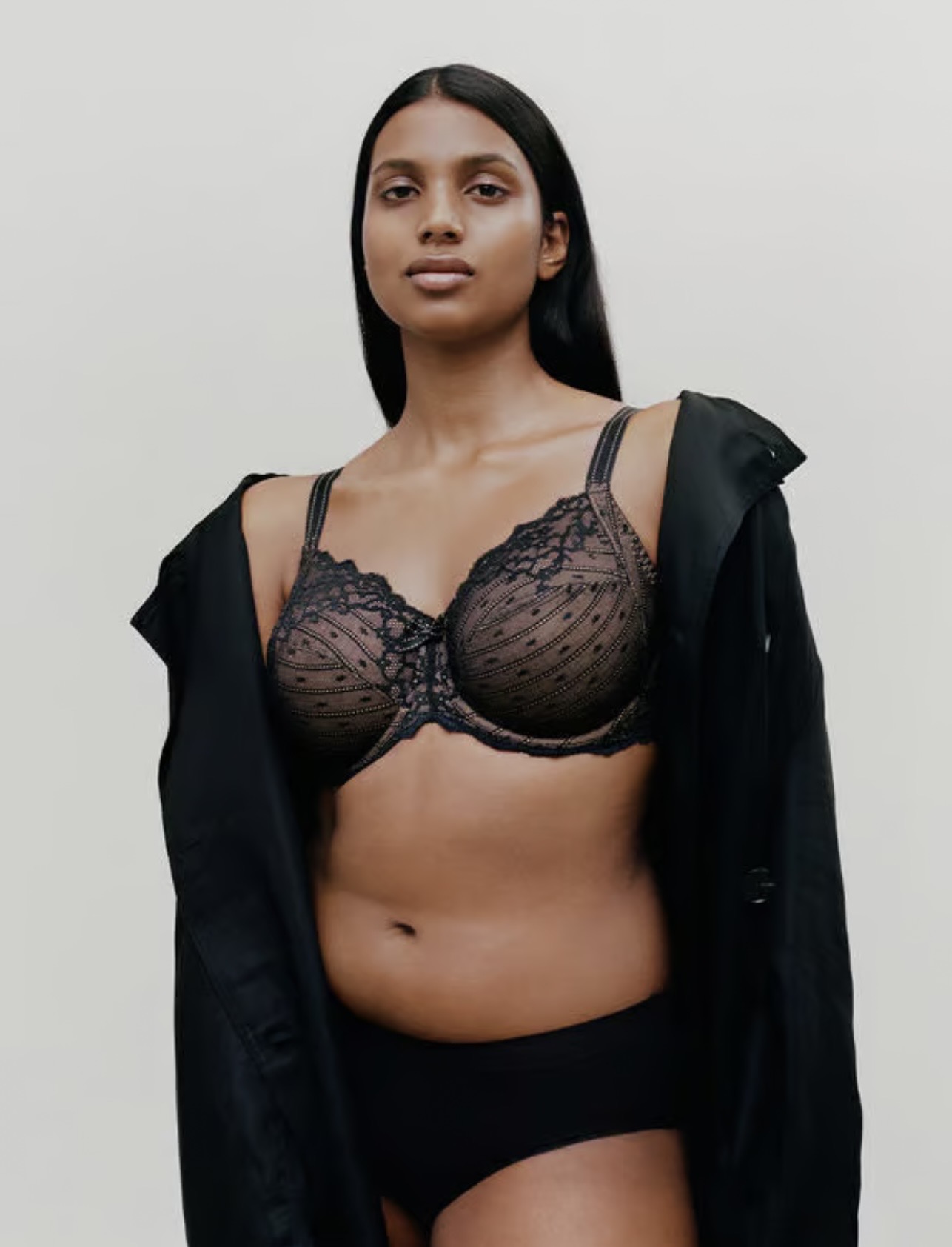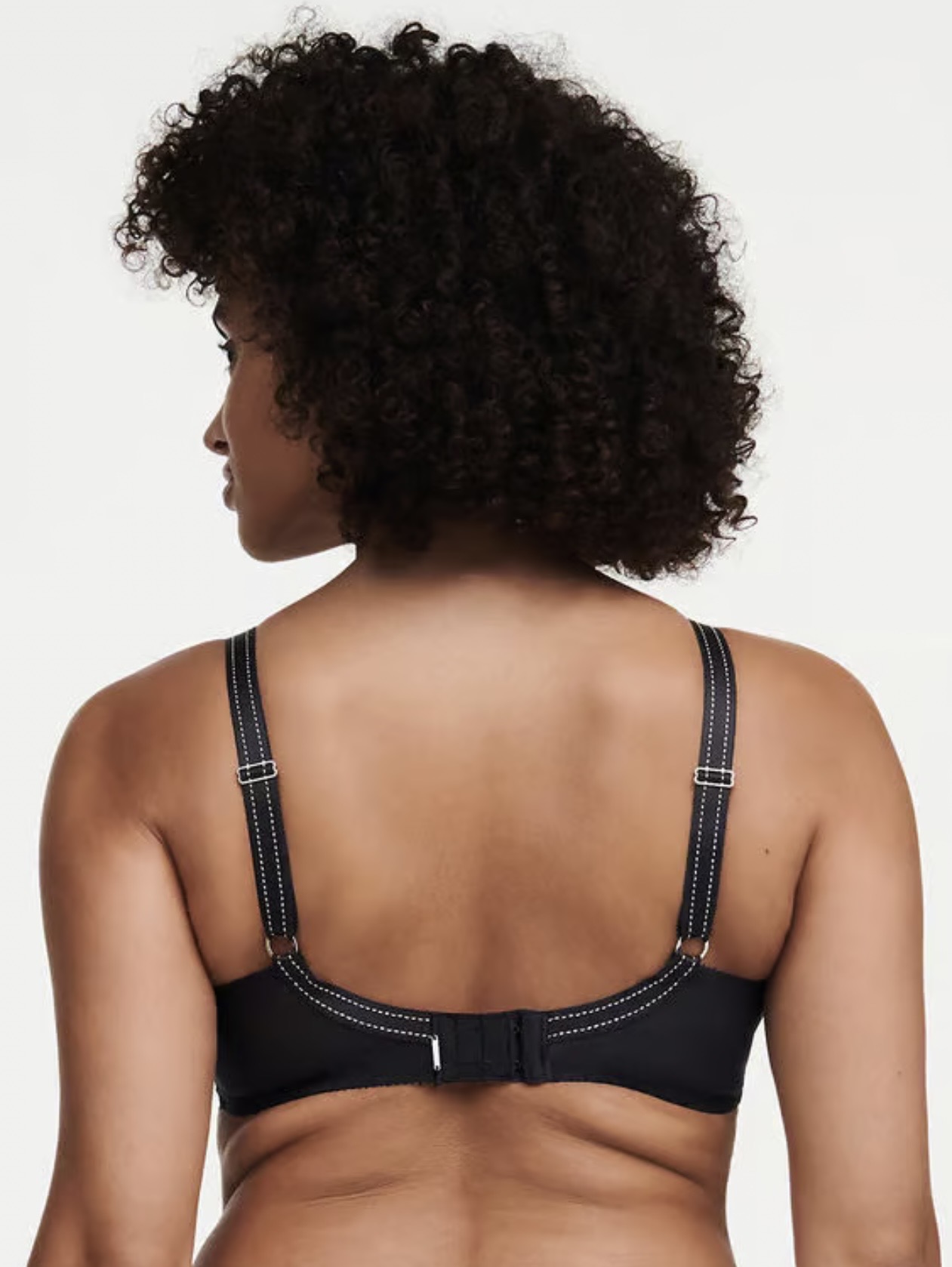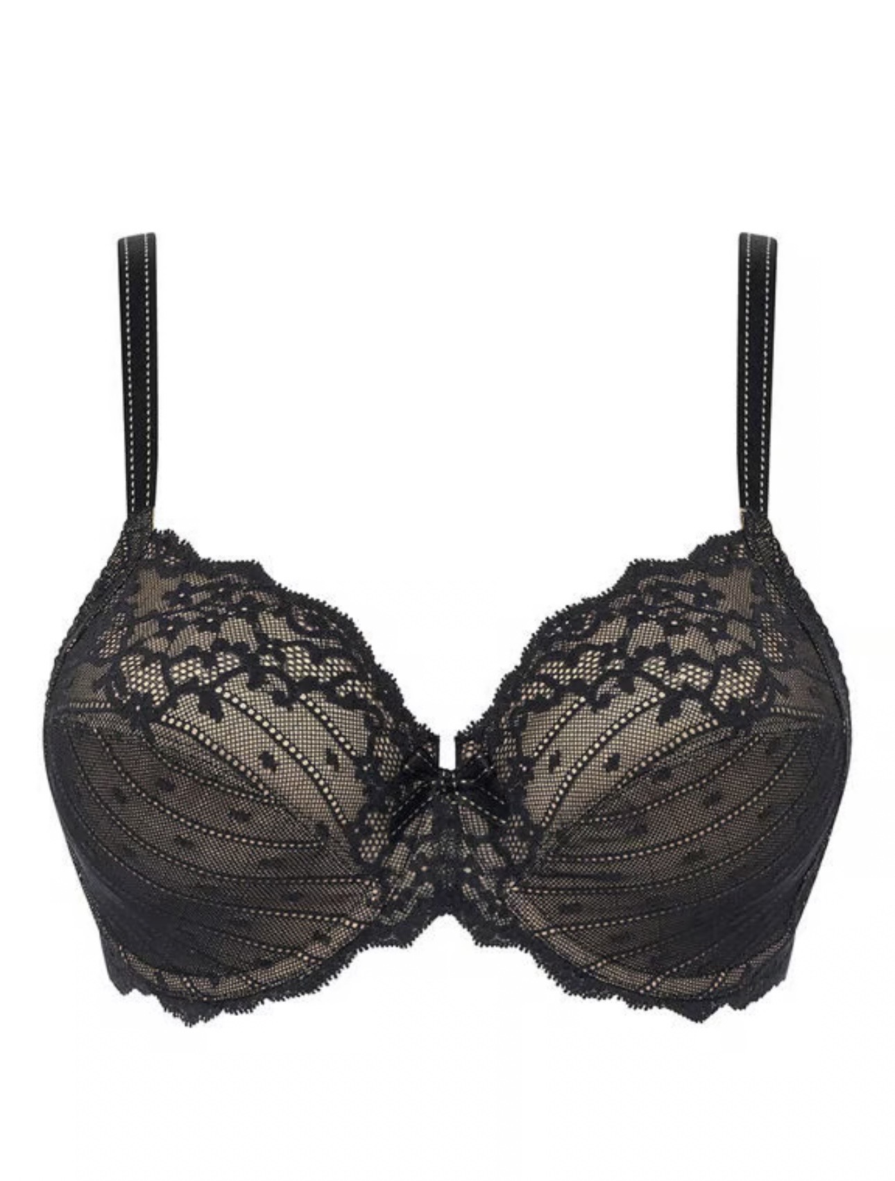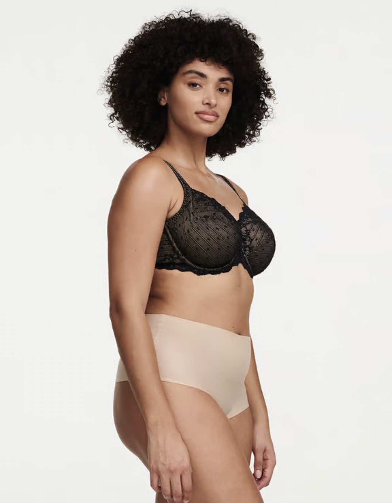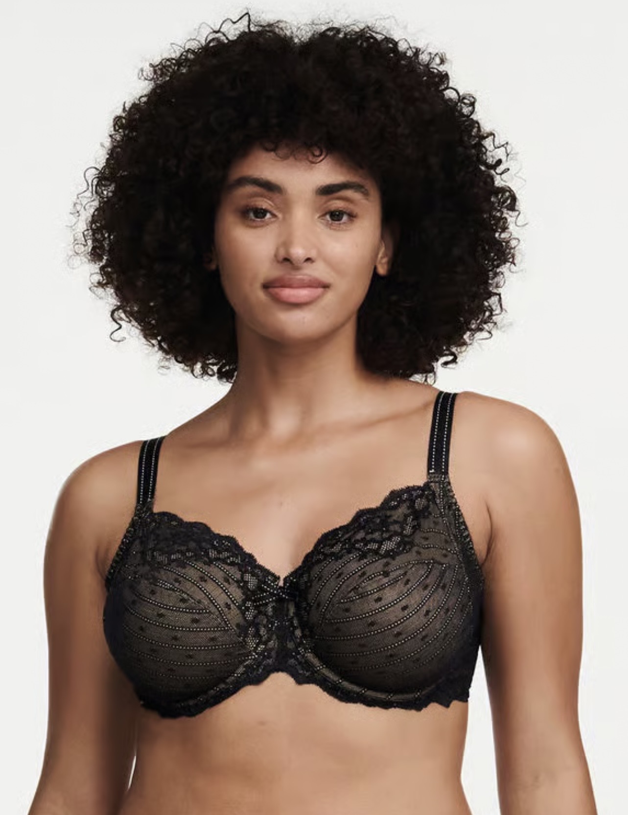 Σουτιέν full cup Μαύρο Chantelle, για μεγάλο και βαρύ στήθος, με μπανέλα, χωρίς ενίσχυση. Κατασκευασμένο με τρεις ζώνες στήριξης, από άνετο πλεκτό ύφασμα με επίπεδη σαγηνευτική δαντέλα για να μην διαγράφει.