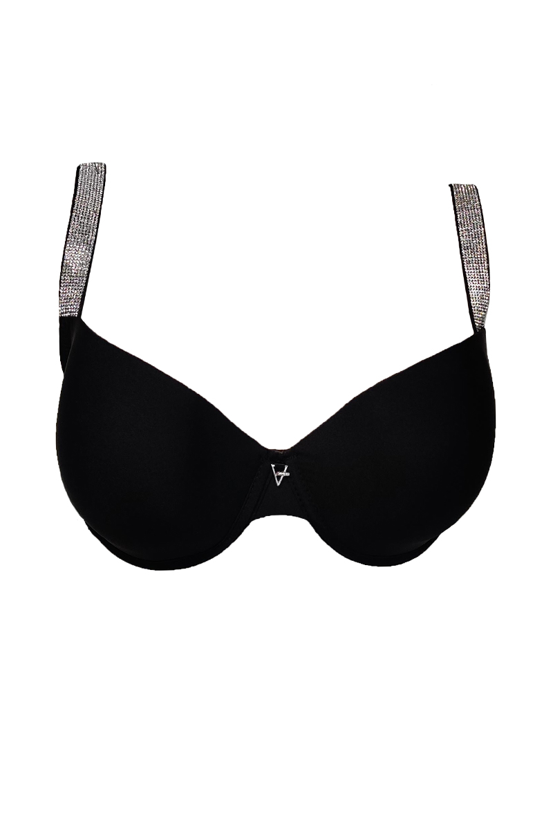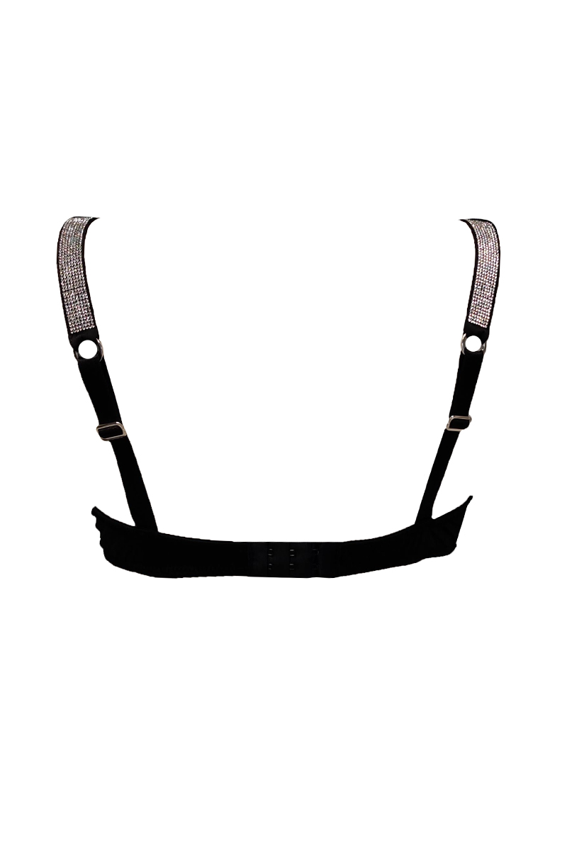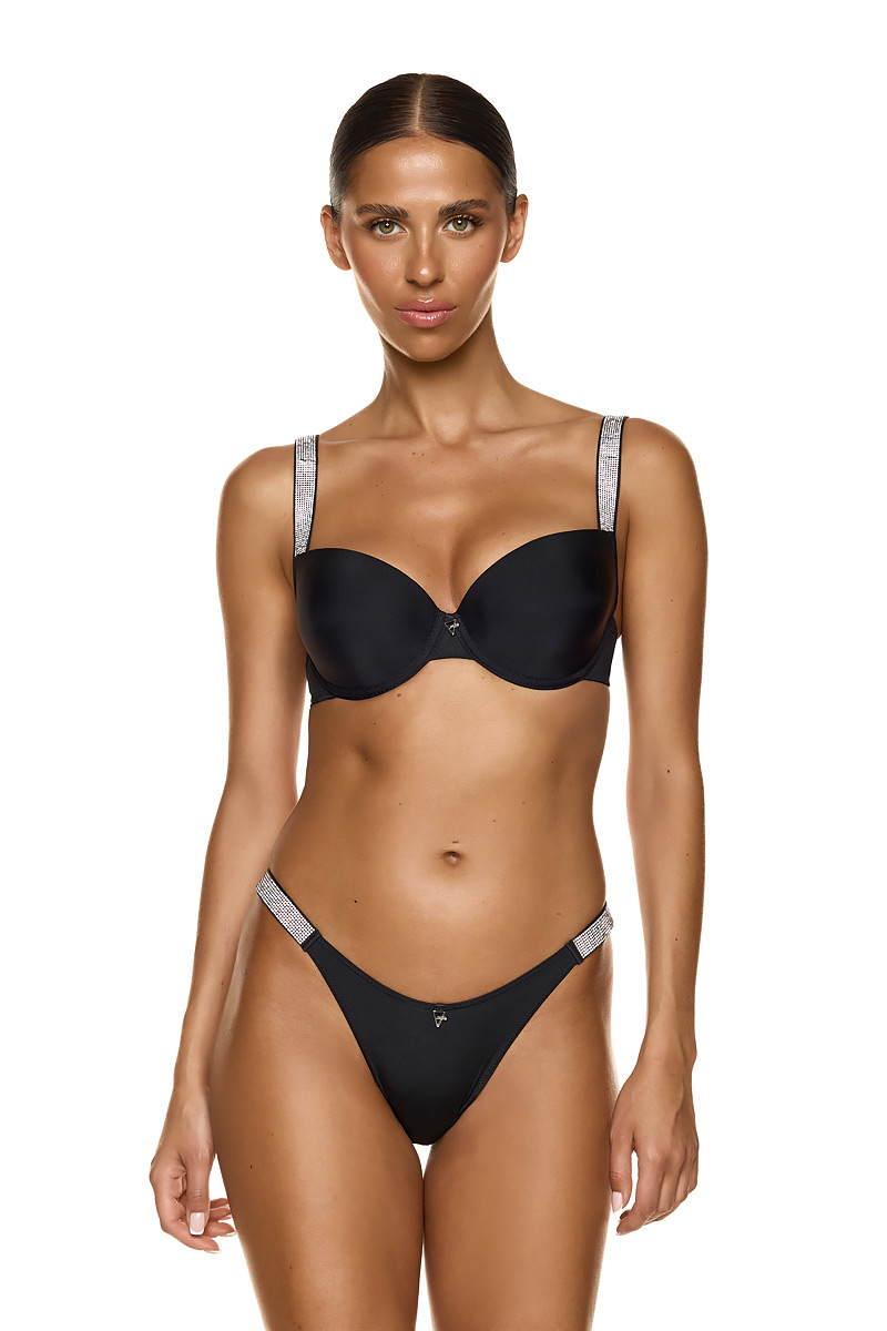 Σουτιέν MED DIAMOND από αισθησιακό μαύρο σατέν ύφασμα με κόσμημα ανάμεσα στα cups και φαρδιές τιράντες με στρας για εντυπωσιακές εμφανίσεις. Cups με ενίσχυση και μπανέλα.