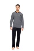 Ανδρική πυτζάμα ULISSE - Γκρι ριγέ Μπλούζα - Μαύρο παντελόνι - Regular Fit - Cotton
