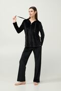 Vamp - Γυναικείο Velvet Lounge Set με Κουκούλα - BLACK
