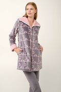 Vamp - Γυναικεία Ρόμπα με Φερμουάρ σε Σκύλο-Παζλ Μοτίβο - GRAY THUNDER