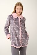 Vamp - Κουμπωτή Fleece Ρόμπα με Σκύλο-Παζλ Μοτίβο - GRAY THUNDER