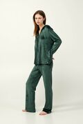 Vamp - Γυναικείο Velvet Lounge Set με Κουκούλα - GREEN TEAL