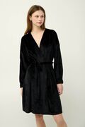 Vamp - Μονόχρωμη Γυναικεία Velvet Ρόμπα - BLACK
