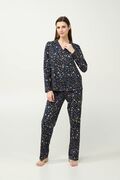 Vamp - Γυναικεία Βαμβακερή Κουμπωτή Πυτζάμα - BLUE