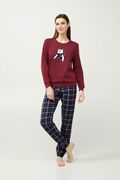 Vamp - Βαμβακερή Γυναικεία Πυτζάμα με Μανσέτες - RED CABERNET