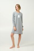 Vamp - Βαμβακερό Χειμερινό Νυχτικό με Τύπωμα - GRAY MELANGE
