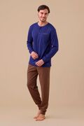 Ανδρική πυτζάμα Noidinotte - Μπλέ - Καφέ Ψαροκόκαλο παντελόνι - Regular Fit - Cotton