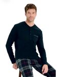 Ανδρική Πυζάμα POLEREN - Μαύρη Μπλούζα - Εμπριμέ Καρό ΜαύροΠαντελόνι - Κανονική Γραμμή - 100% Βαμβάκι